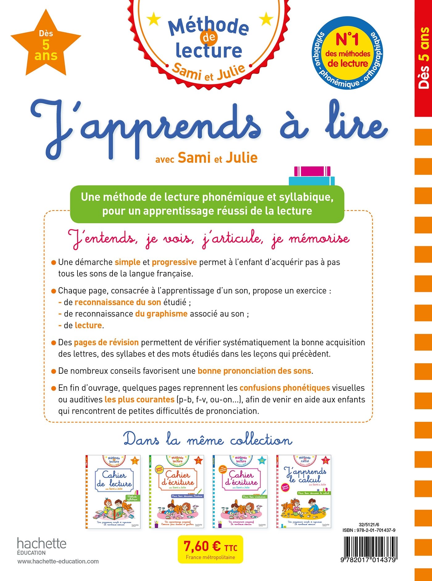 Une méthode de lecture phonémique et syllabique, pour un apprentissage réussi de la lecture  : J’entends, je vois, j’articule, je mémorise. Une démarche simple et progressive permet à l’enfant d’acquérir pas à pas tous les sons de la langue française.