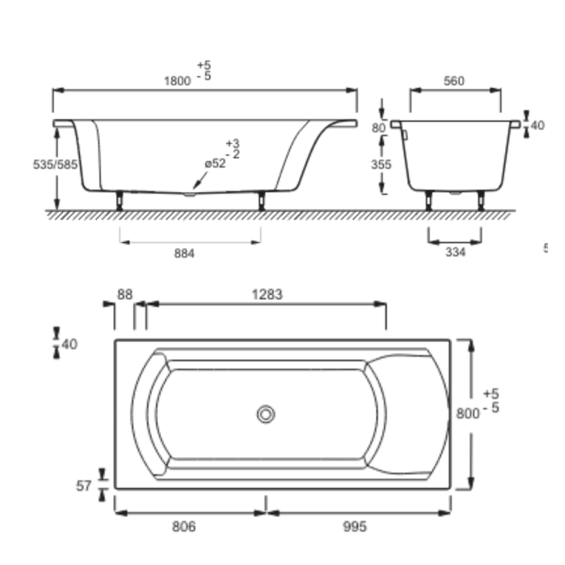 | Forme de baignoire | Droite |