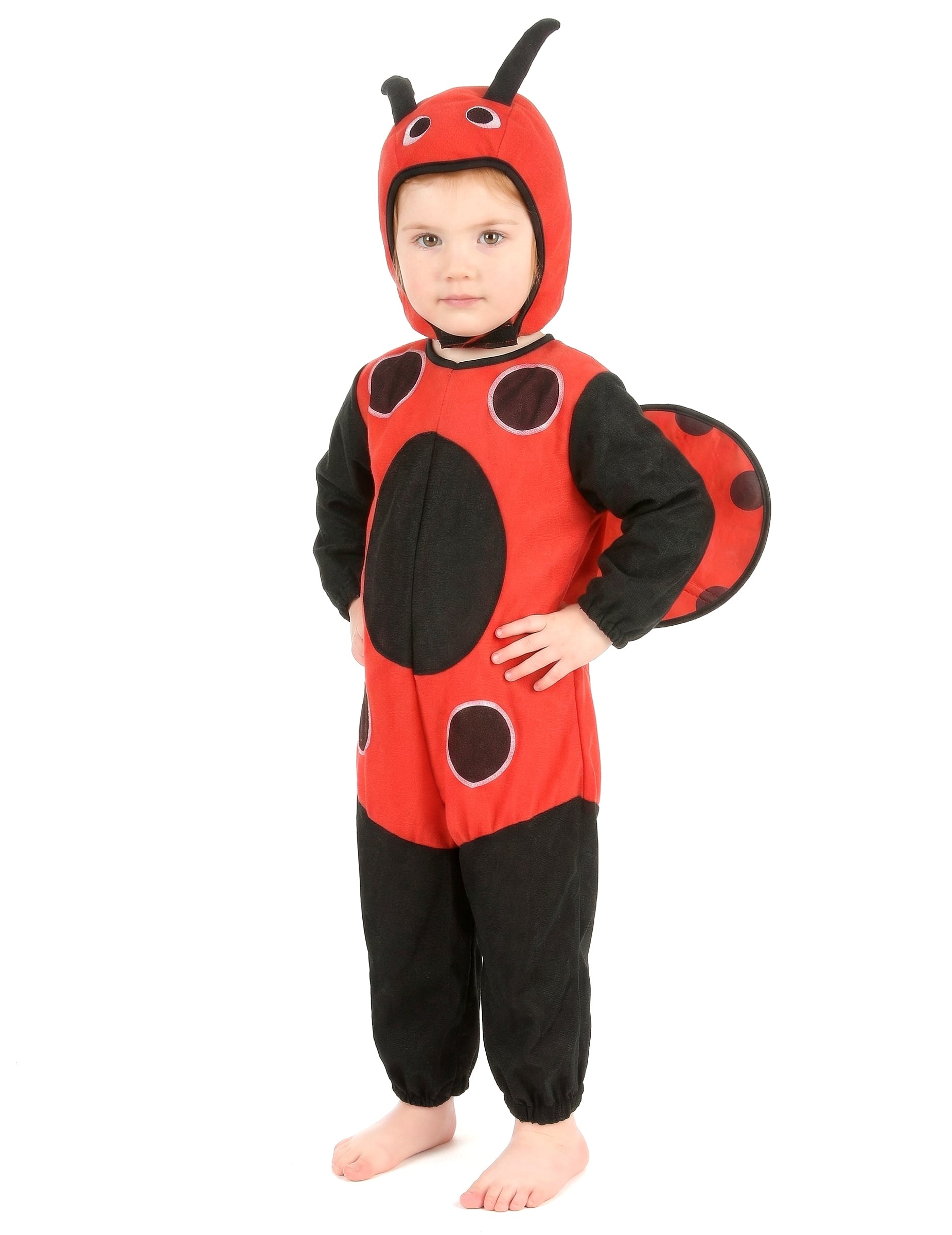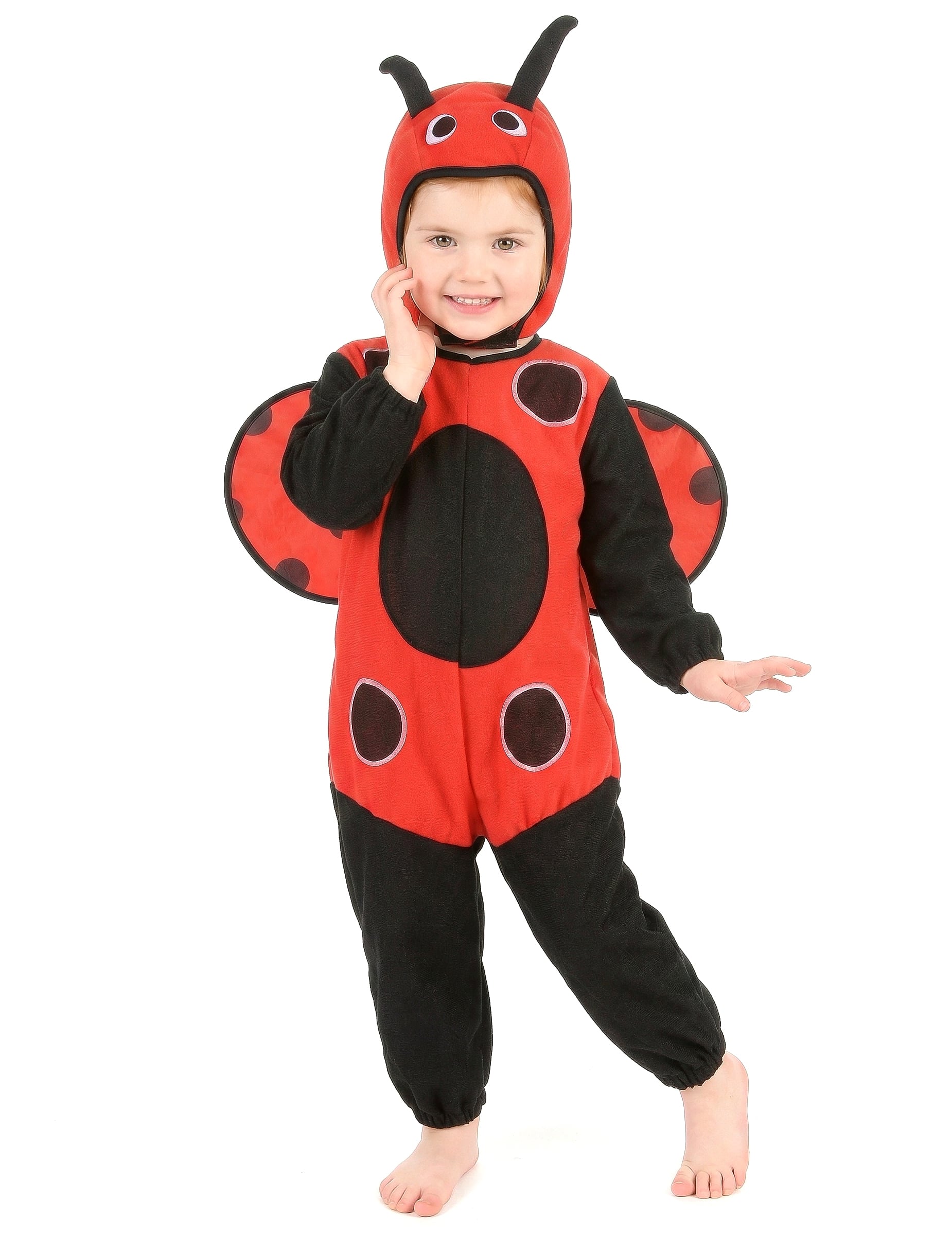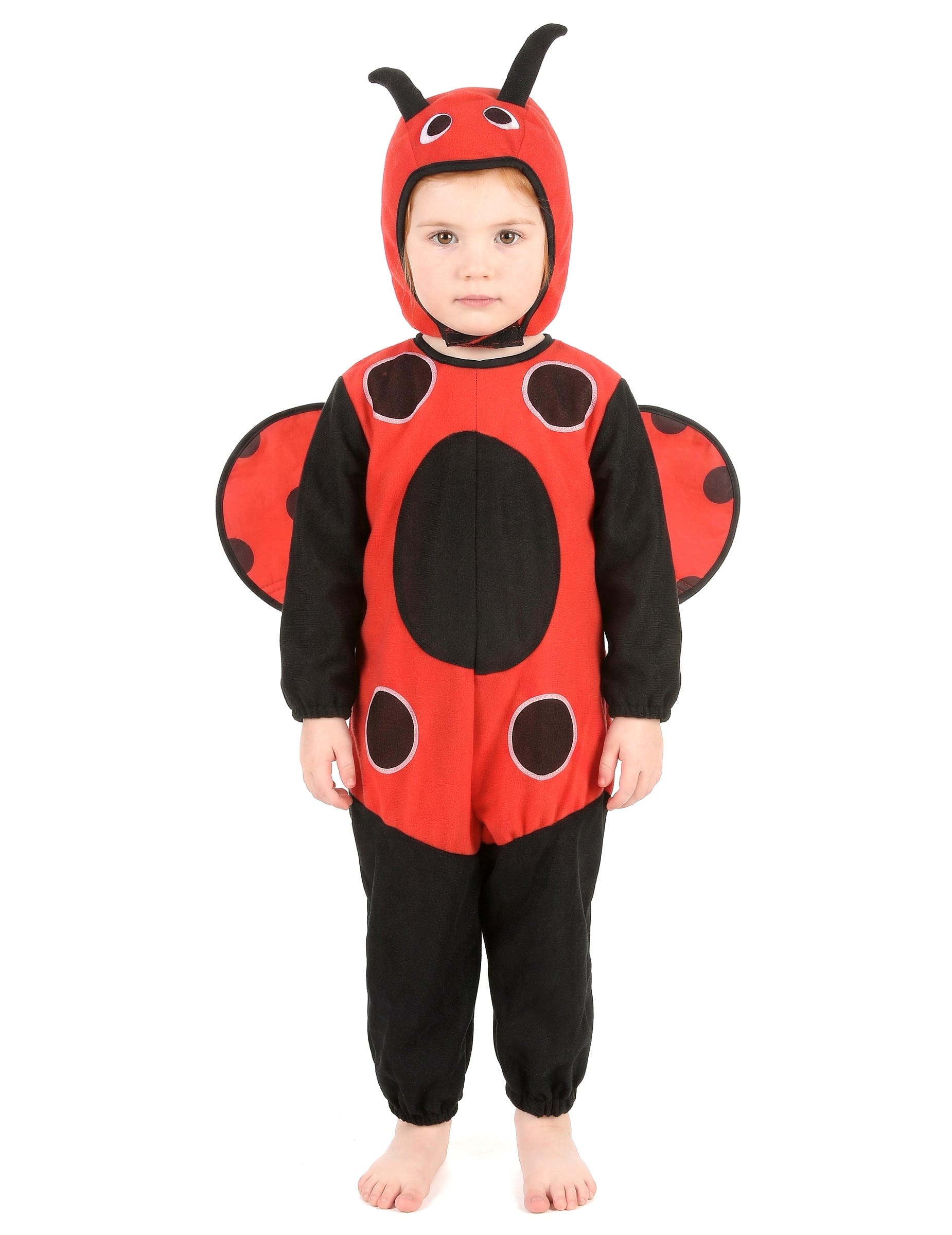 Ce déguisement de coccinelle pour enfant comprend une combinaison, une cagoule et une paire d'ailes. La combinaison est en tissu de type polaire. Les manches et les jambes sont noires tandis que le reste du buste est à pois noirs sur fond rouge. Cet habit très pratique se ferme aisément dans le dos grâce à des scratches. La cagoule est du même tissu que la combinaison. Elle sera à scratcher sous le menton et présente deux yeux à l'avant, surmontés par des antennes noires incurvées. Enfin, les ailes sont en tissu tendu rouge à pois noirs. Deux larges scratches vous permettront sans problème de les accrocher au dos de votre petit Pour un spectacle de fin d'année, un carnaval, ou un goûter d'anniversaire, cet adorable déguisement est parfait pour votre bout de chou !