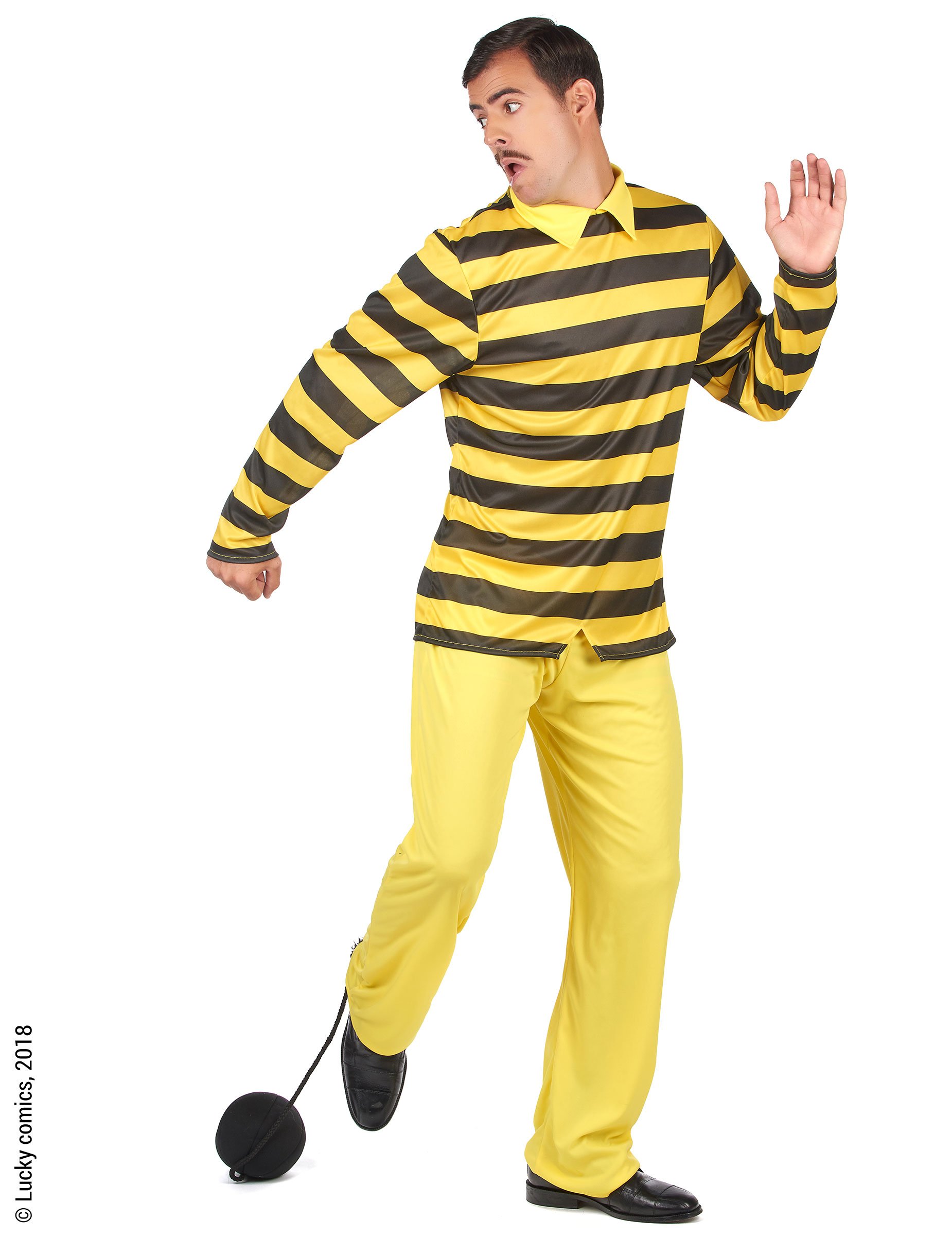Ce déguisement Dalton pour adulte est sous licence officielle Lucky Luke. Il se compose d'un haut, d'un pantalon et d'un boulet. Le haut à manches longues est rayé jaune et noir avec un col. Le pantalon, lui, est fluide, à coupe droite et entièrement jaune. Et pour encore plus de réalisme un boulet de prisonnier noir, qui se porte à la cheville, est inclus. Ce déguisement sera parfait pour incarner l'un des célébres frères Dalton, lors de la prochaine soirée déguisée ou lors du carnaval.