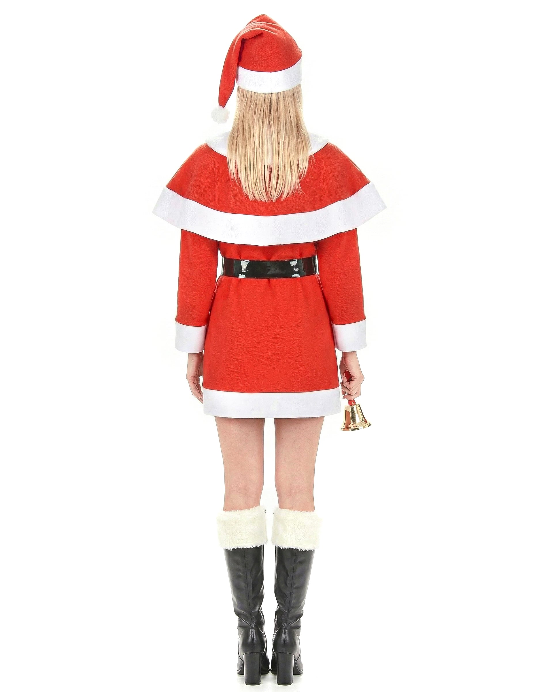 Ce déguisement de mère Noël pour femme se compose d'une robe, d'une cape, d'une ceinture et d'un chapeau. L'intégralité du déguisement est de couleur rouge et blanc. Ce costume est parfait pour le réveillon de Noël pour accompagner le Père Noël et faire rayonner de joie tous les enfants.