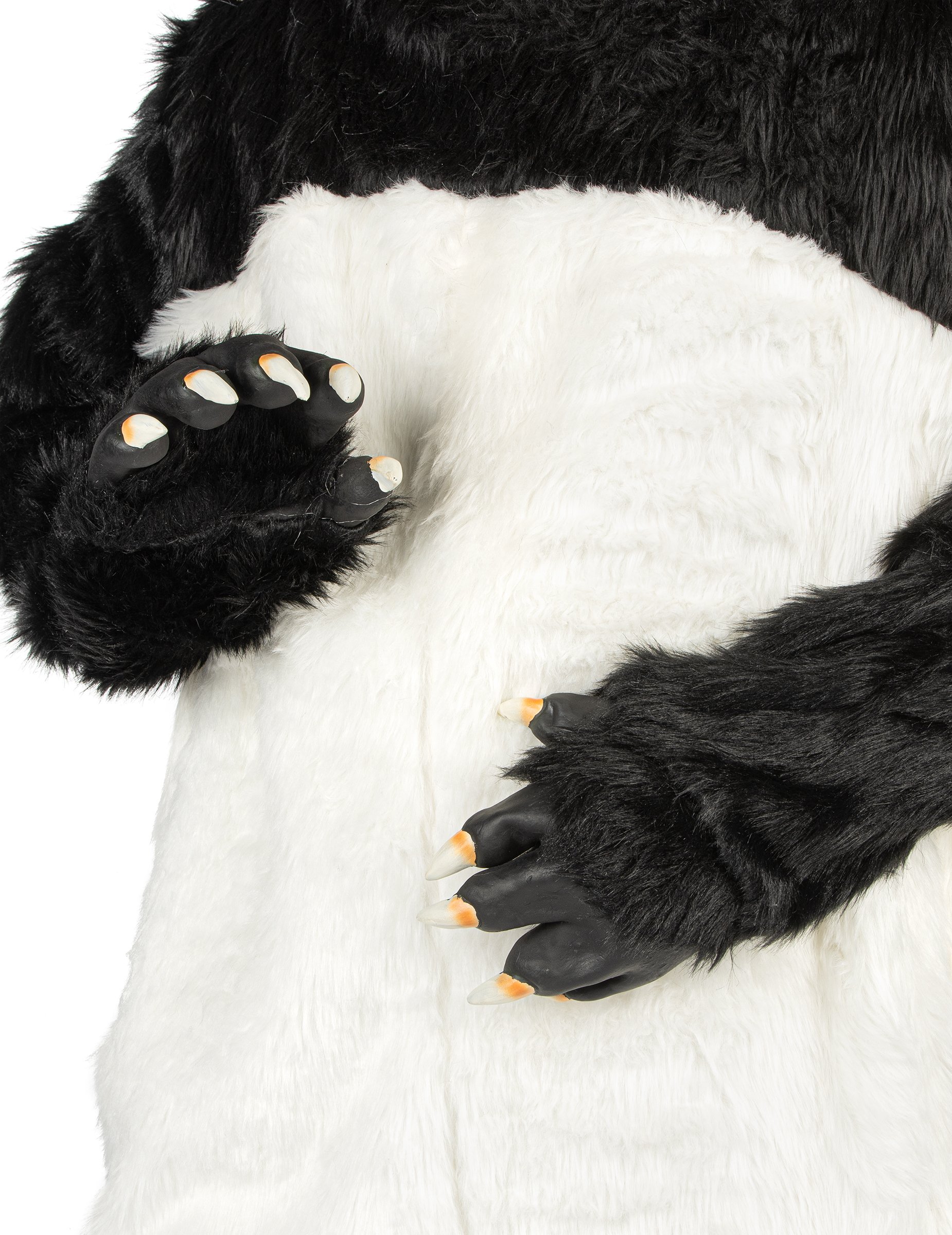 Ce déguisement de panda pour adulte est composé d'une combinaison, d'un masque, de deux gants et de deux chaussons. La combinaison est intégrale et se ferme dans le dos par des scratches. Elle est entièrement recouverte de fausse fourrure très douce qui évoque parfaitement le pelage des ces attachants mammifères. Les couleurs sont de manière évidente le blanc et le noir. Le masque est intégral et s'enfilera comme une cagoule. Les yeux et le nez sont percés pour votre confort. Comme la combinaison, le masque est recouvert de poils synthétiques. L'intérieur est en latex. Les gants et les chaussons représentent les pattes griffues du célèbre mammifère. Ces 4 éléments sont recouverts de fausse fourrures et s'enfileront très facilement car ils sont en latex à l'intérieur. Pour supporter une équipe sportive ou pour tout autre évènement déguisés, ce déguisement intégral et très réaliste ne manquera pas de créer l'étonnement de vos amis.
