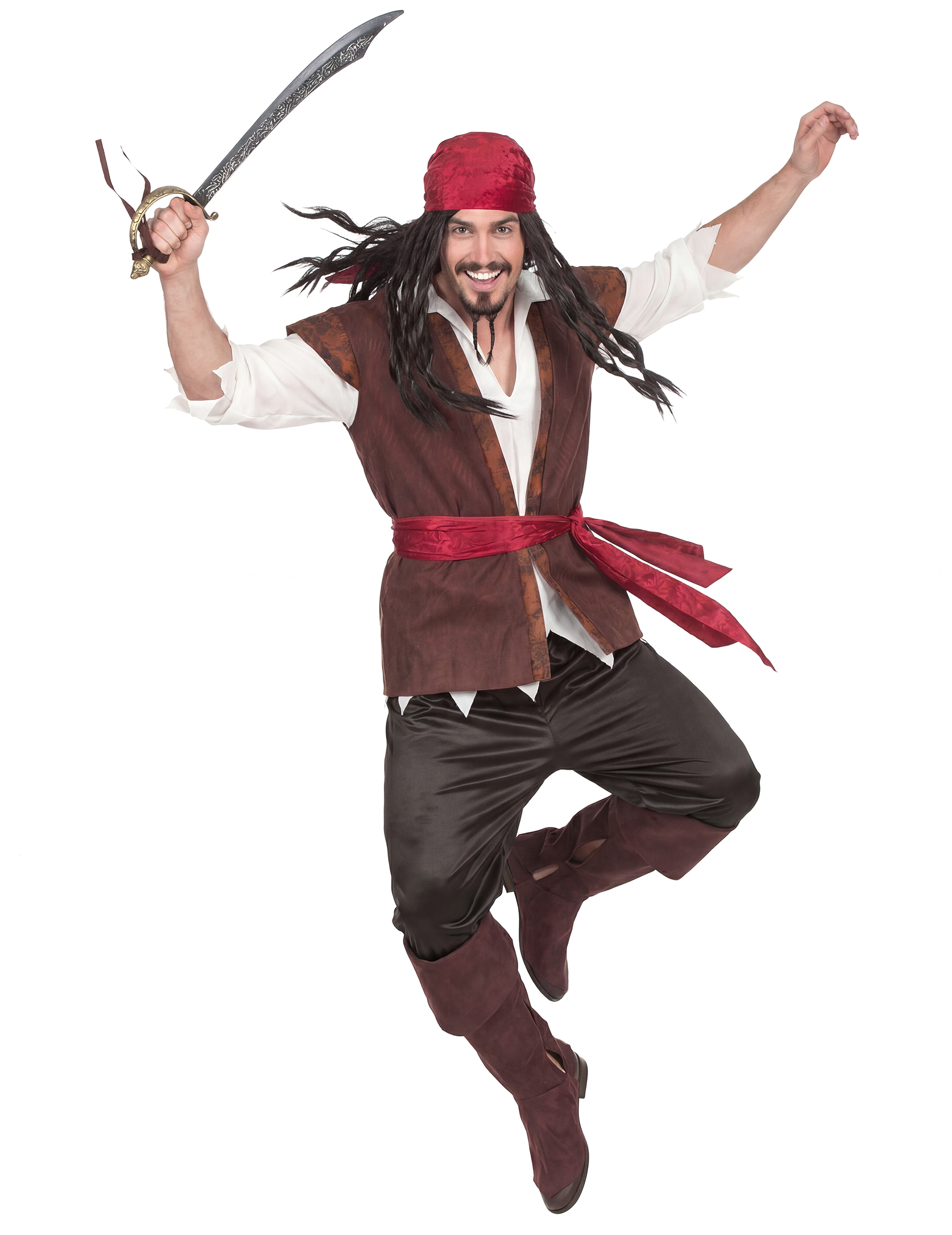 Ce déguisement d'homme pirate comprend le t-shirt à l'effet chemise et le gilet qui ne font qu'un, un bandana, un pantacourt, une ceinture et des sur-bottes. Le haut est une imitation de chemise blanche avec un gilet manches courtes marron.Les finitions de la chemise donnent un aspect déchiré et réaliste. Le pantacourt noir est fluide et légèrement élastique à la taille pour un maximum de confort. La ceinture est un ruban à nouer, permettant ainsi d'ajuster le déguisement à votre taille. Le bandana sans perruque est assorti à la ceinture et viendra finir ce déguisement. Enfin, les sur-bottes, assorties à la veste, font le détail soigné de cette panoplie. Ce costume de pirate pour homme est parfait pour incarner un véritable pirate lors du Carnaval, de vos soirées déguisées ou à thème.