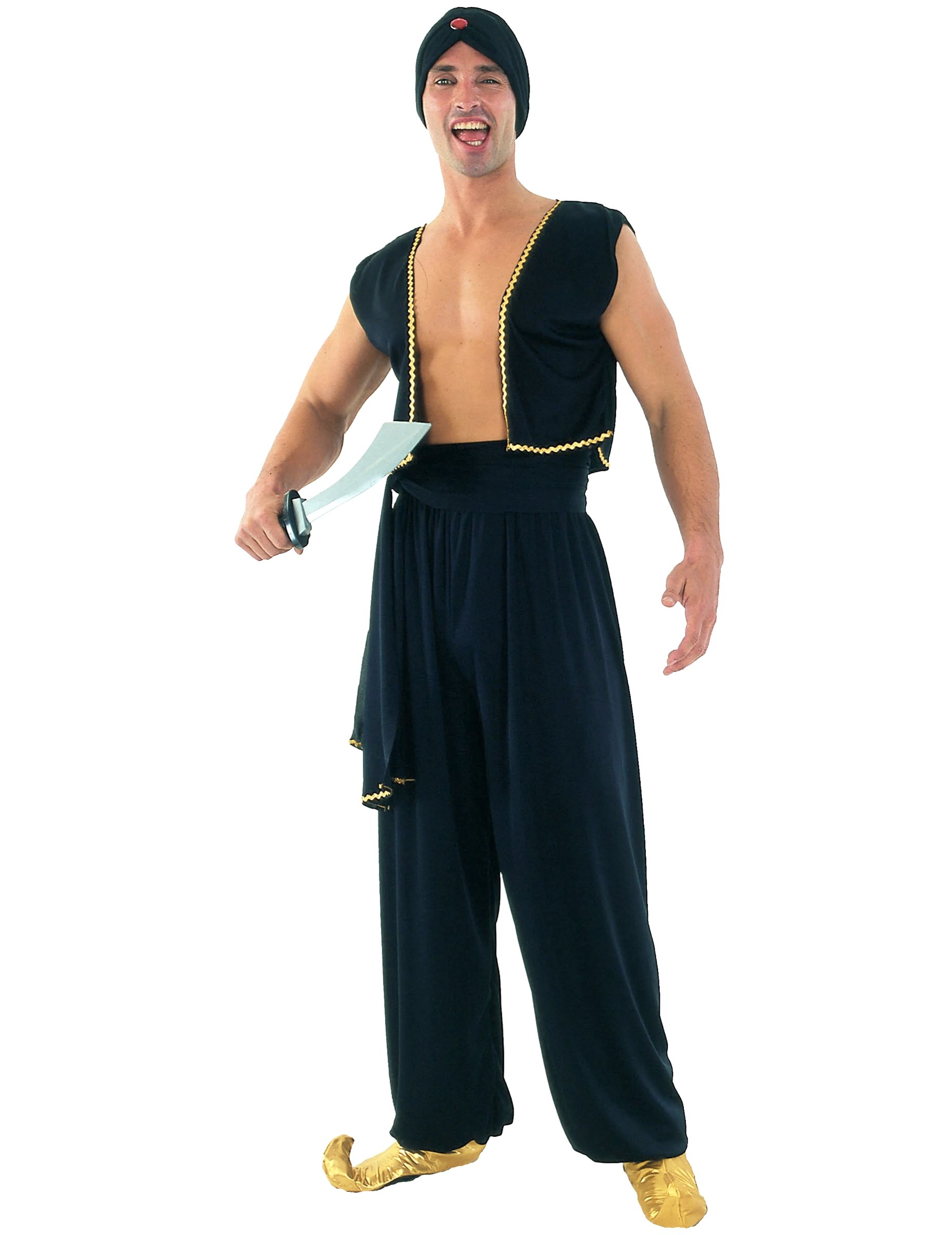 Ce déguisement de sultan pour homme comprend un pantalon, un boléro, une ceinture et une coiffe de couleur noir (arme et babouches non incluses). Le pantalon est élastique à la taille et sera confortable à porte. Il mesure environ 110 cm de longueur. De jolies coutures dorées donnent de la couleur à votre tenue. Ce déguisement est parfait pour vos soirées à thèmes costumées.