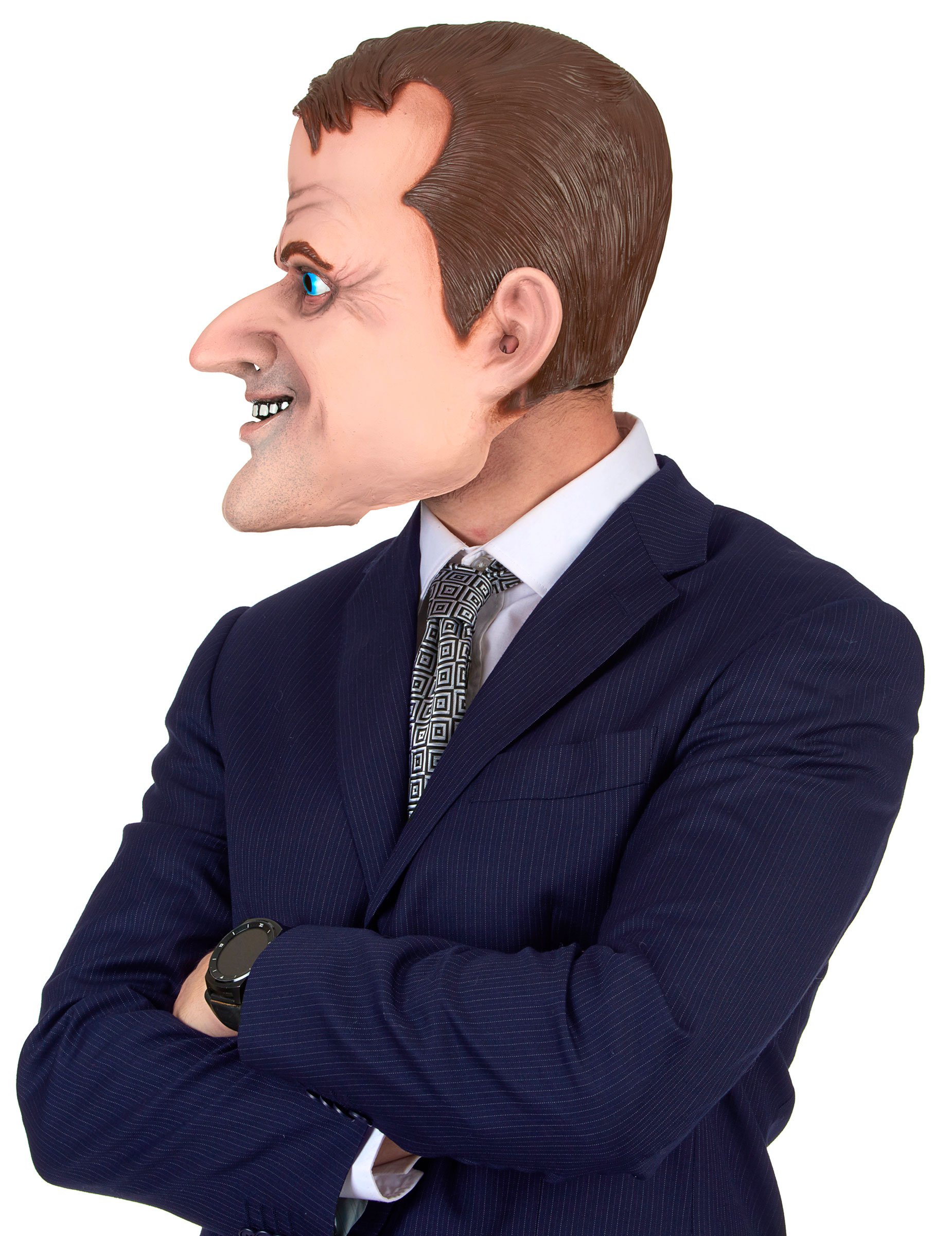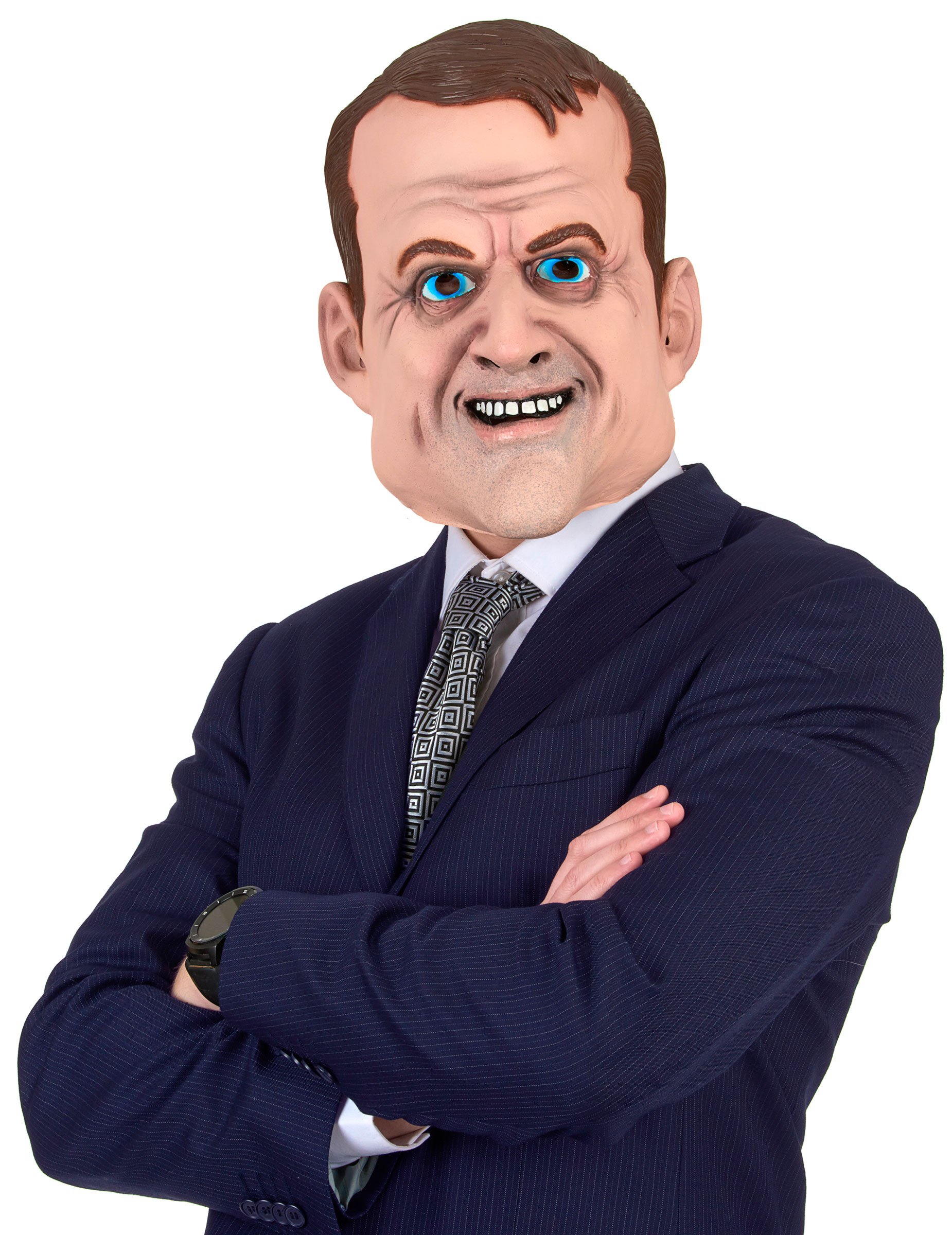Ce masque humoristique en latex représente le visage de Emmanuel Macron. Il recouvrira entièrement votre visage. Peint avec beaucoup de détails, un cube de mousse présent à l'intérieur du masque assurera un bon maintien du masque à votre visage. Les yeux, la bouche et le nez sont ajourés afin de ne pas entraver vos sens.