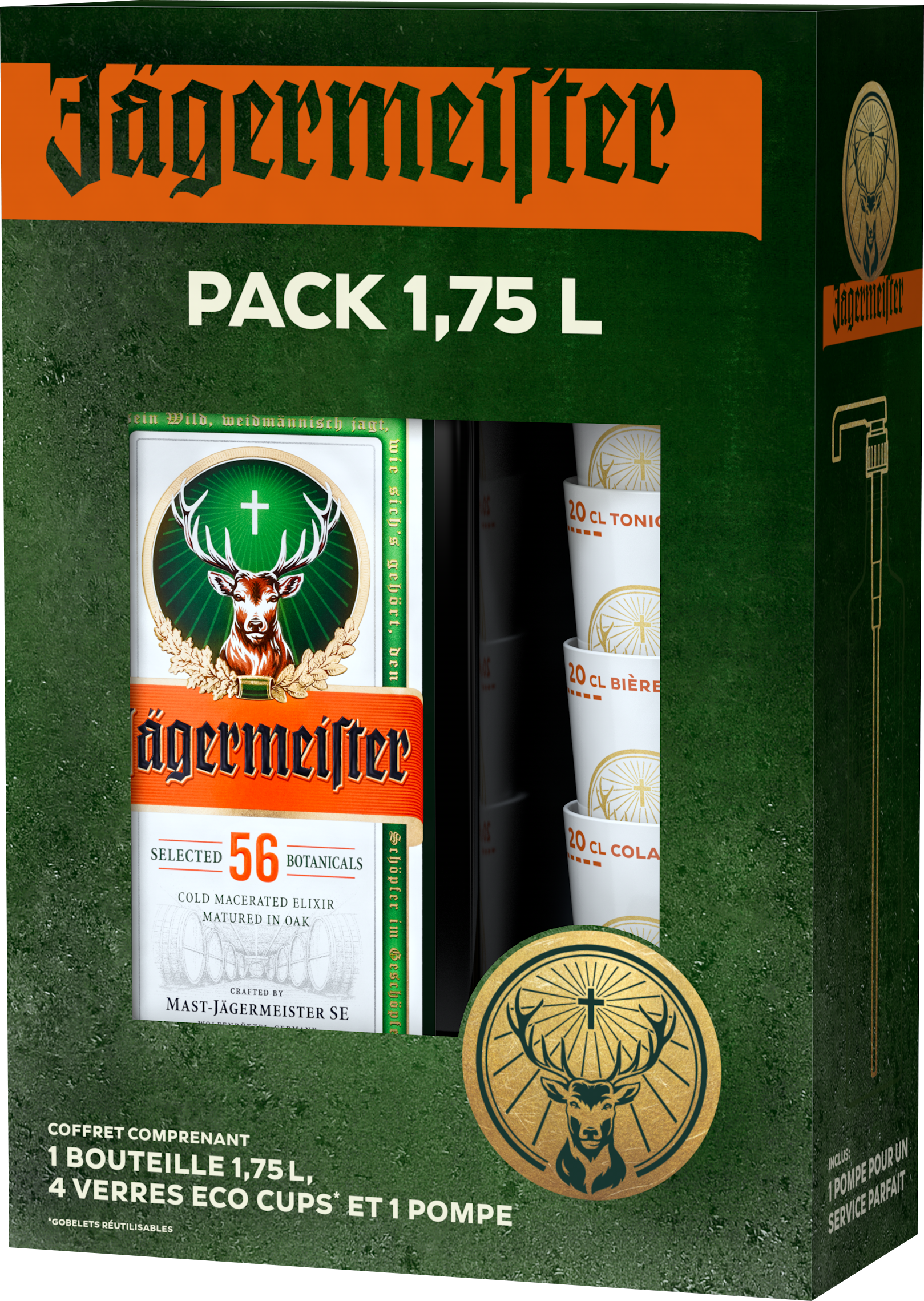 | Libellé | Jägermeister Coffret Liqueur + 4 Eco Cups - 1,75 L |