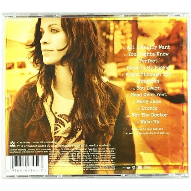 | Liste des pistes | 1.1 . all i really want - Morissette, Alanis,Ballard, Glenn 1.2 . you oughta know - Morissette, Alanis,Ballard, Glenn 1.3 . perfect - Morissette, Alanis,Ballard, Glenn 1.4 . hand in my pocket - Morissette, Alanis,Ballard, Glenn 1.5 . hight through you - Morissette, Alanis,Ballard, Glenn 1.6 . forgiven - Morissette, Alanis,Ballard, Glenn 1.7 . you learn - Morissette, Alanis,Ballard, Glenn 1.8 . head over feet - Morissette, Alanis,Ballard, Glenn 1.9 . mary jane - Morissette, Alanis,Ballard, Glenn 1.10 . ironic - Morissette, Alanis,Ballard, Glenn 1.11 . not the doctor - Morissette, Alanis,Ballard, Glenn 1.12 . wake up - Morissette, Alanis,Ballard, Glenn |