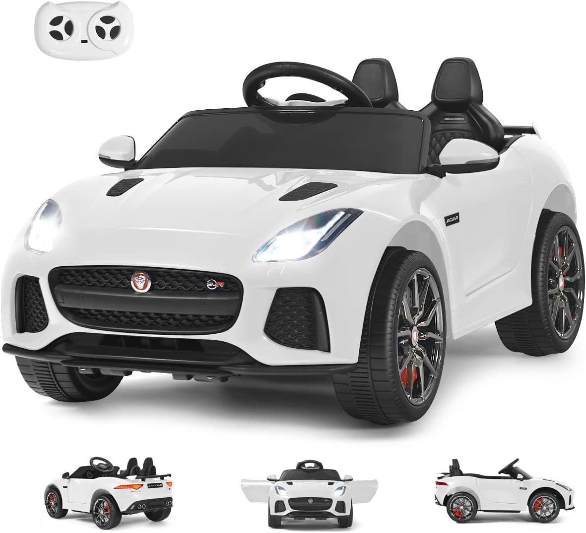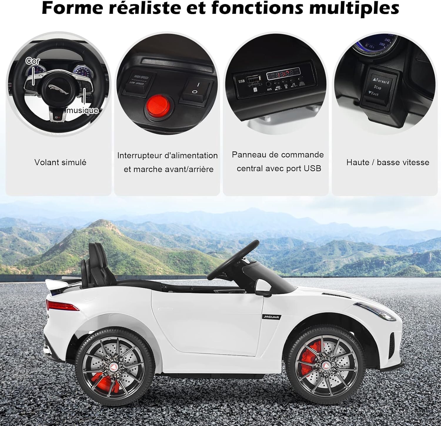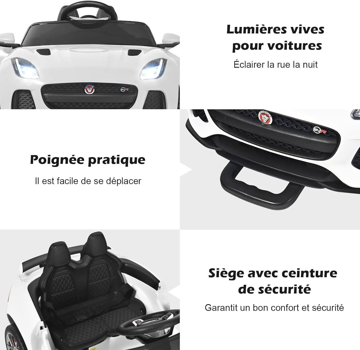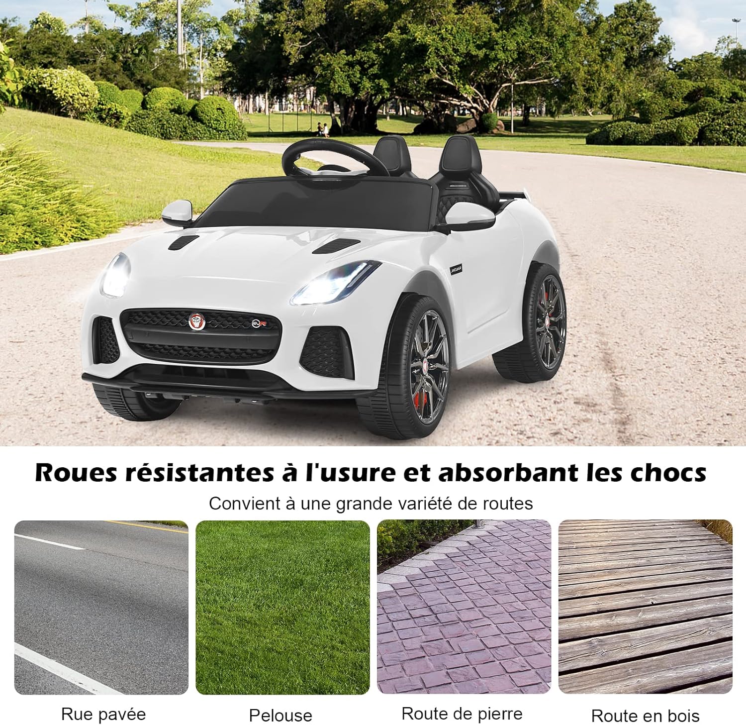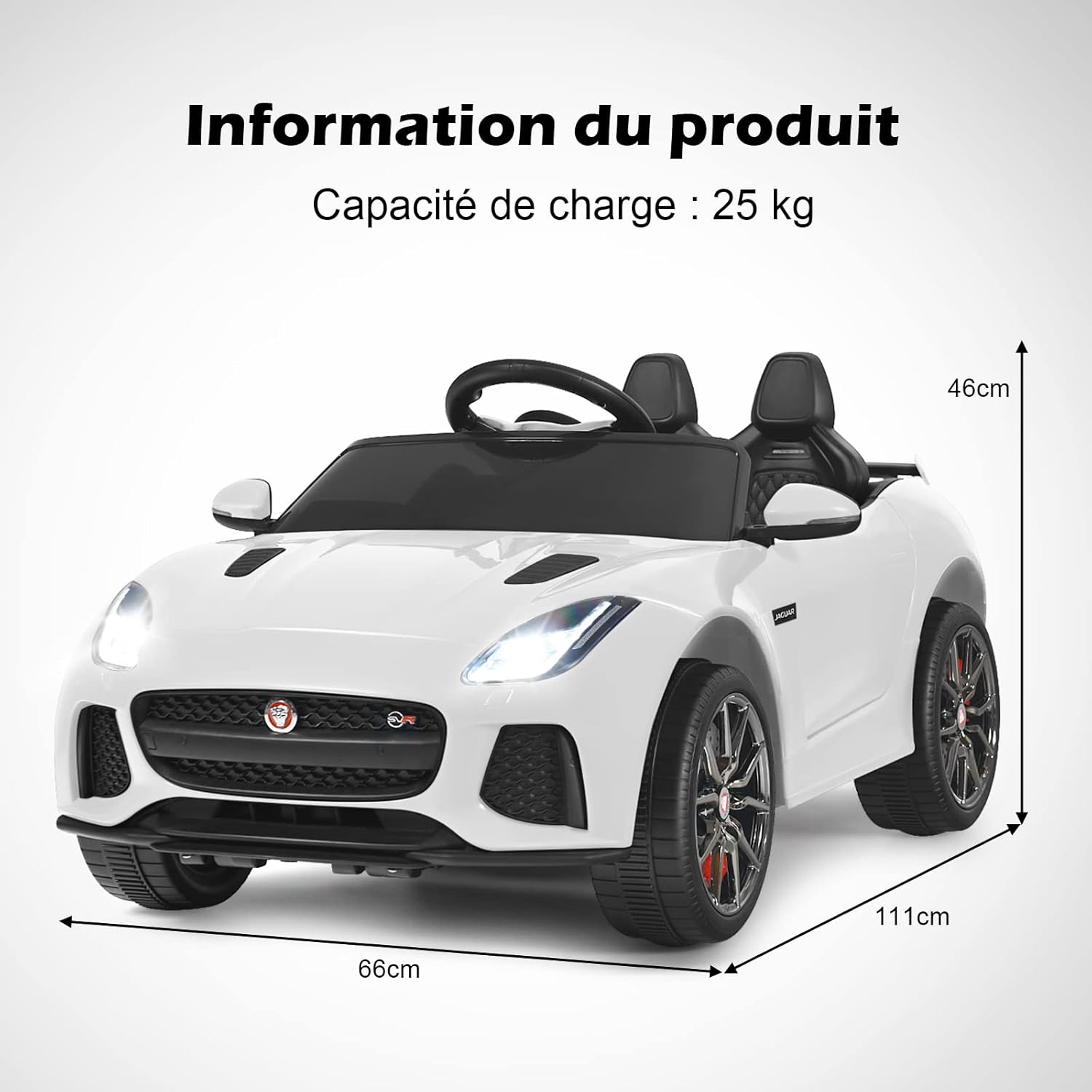 Jaguar voiture electrique enfants 12v avec télécommande 3-5 km/h sons et musique, voiture electrique blan