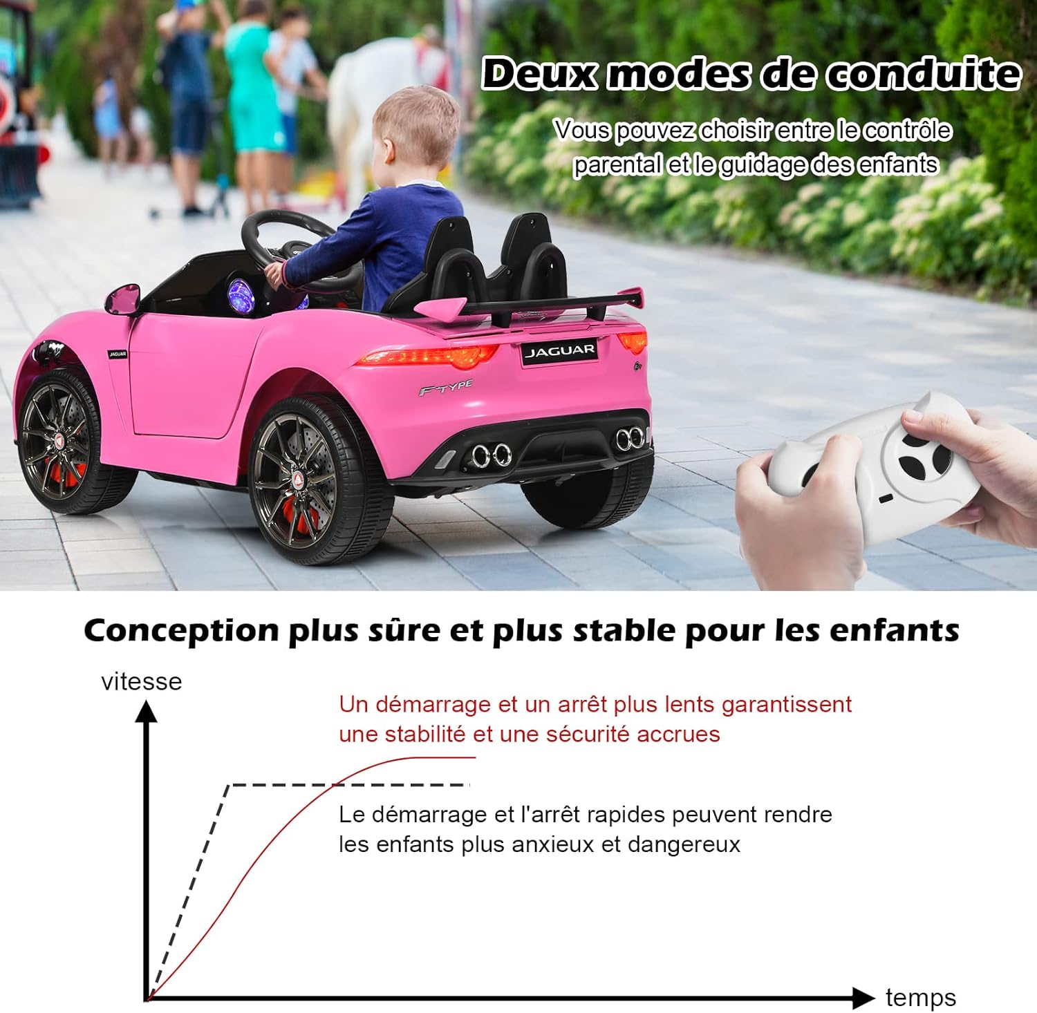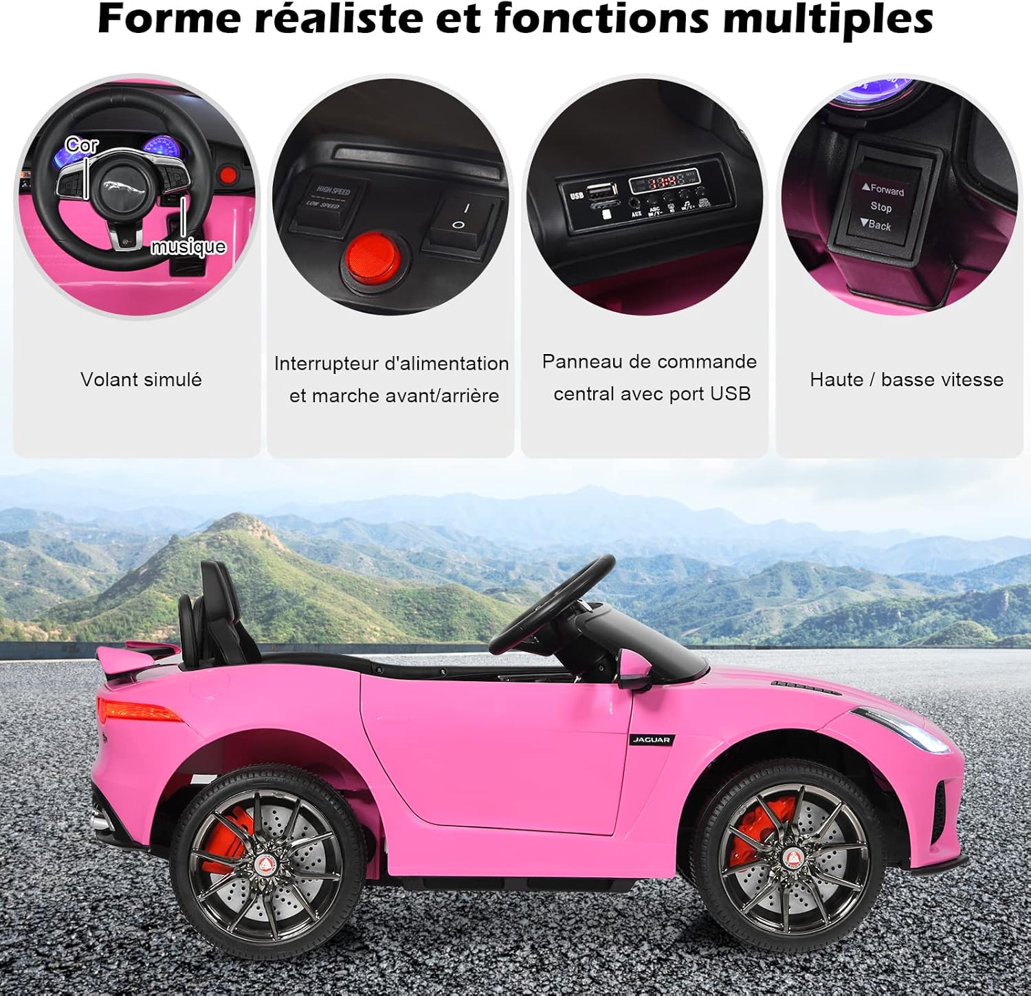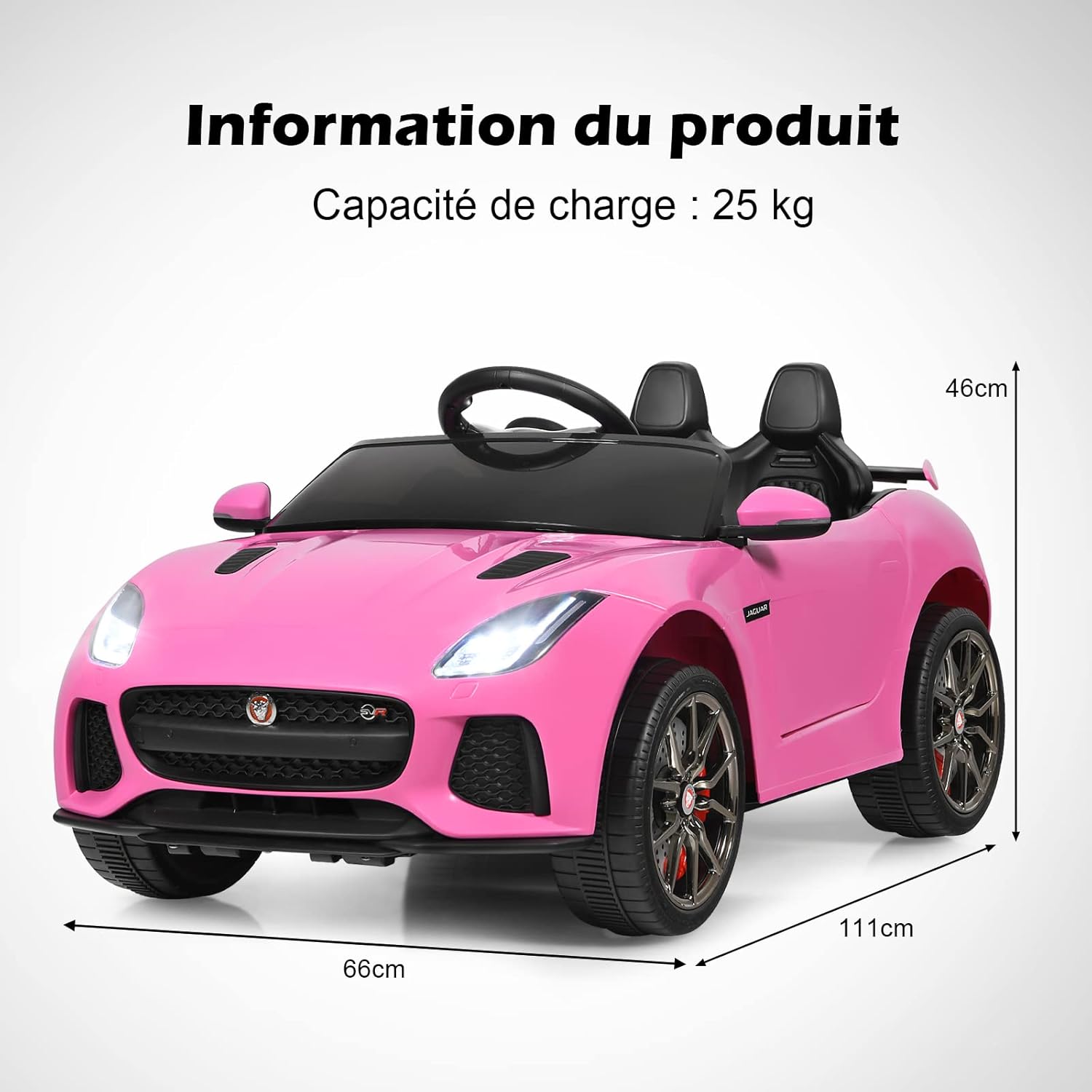 Jaguar voiture electrique enfants 12v avec télécommande 3-5 km/h sons et musique, voiture electrique rose