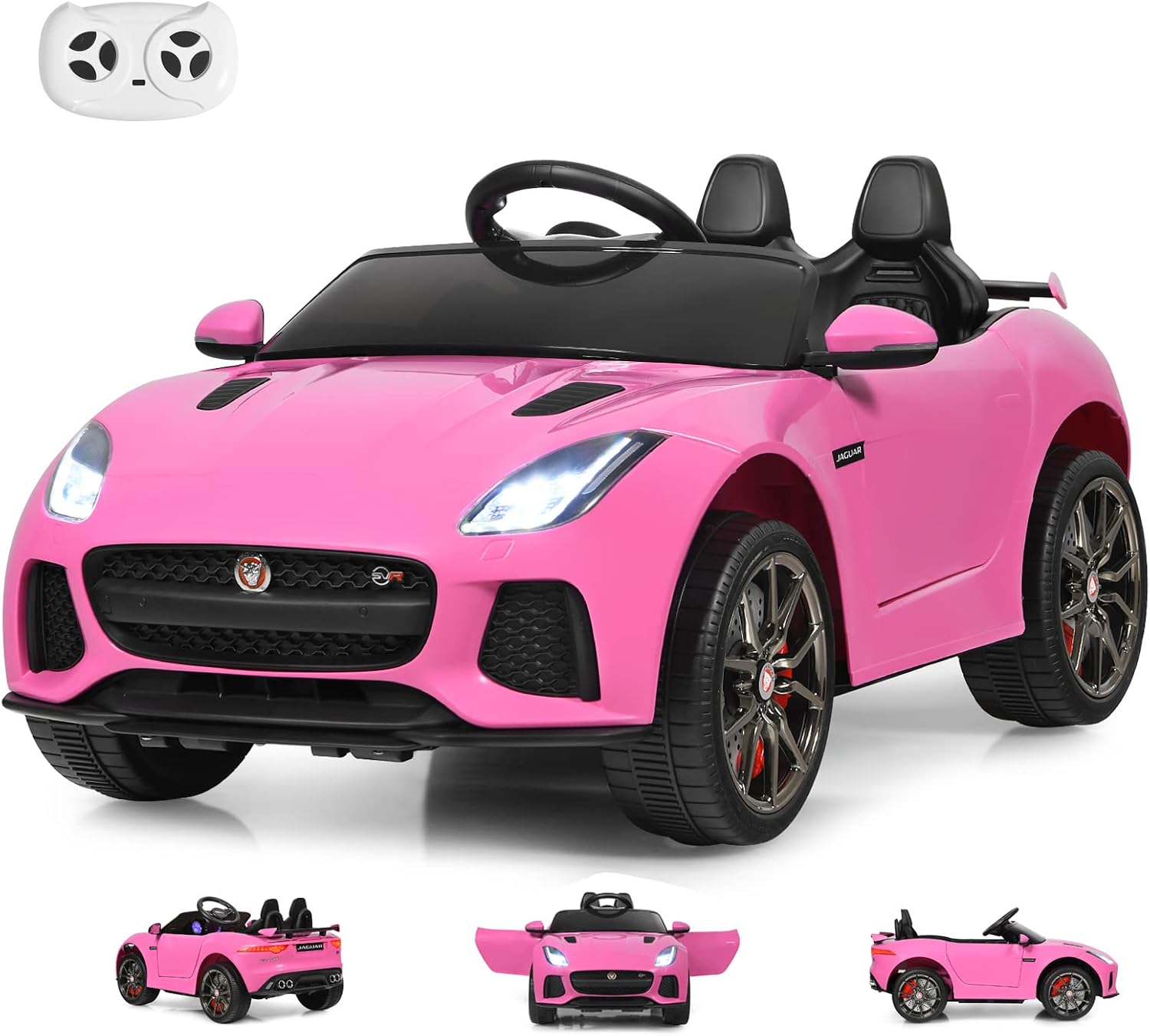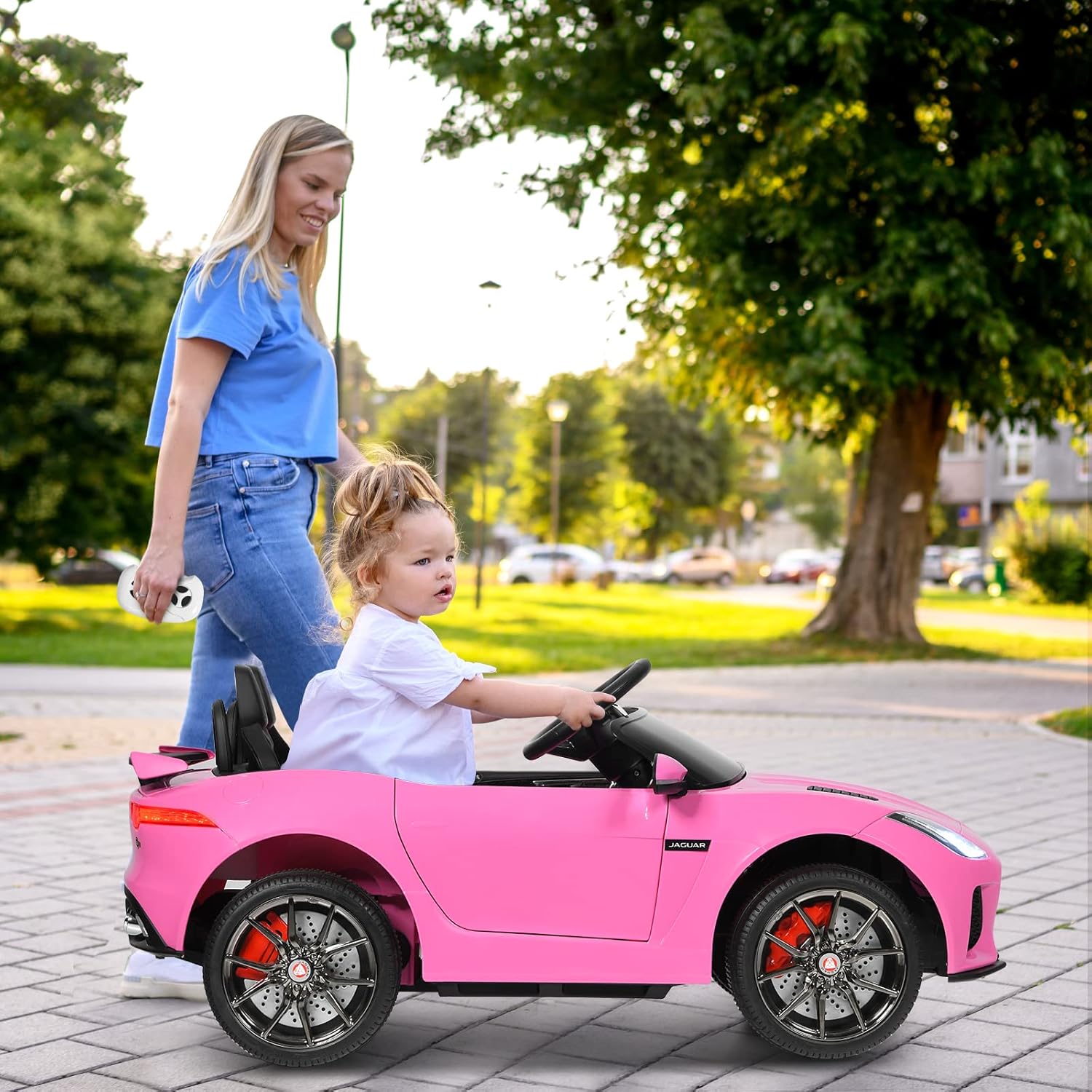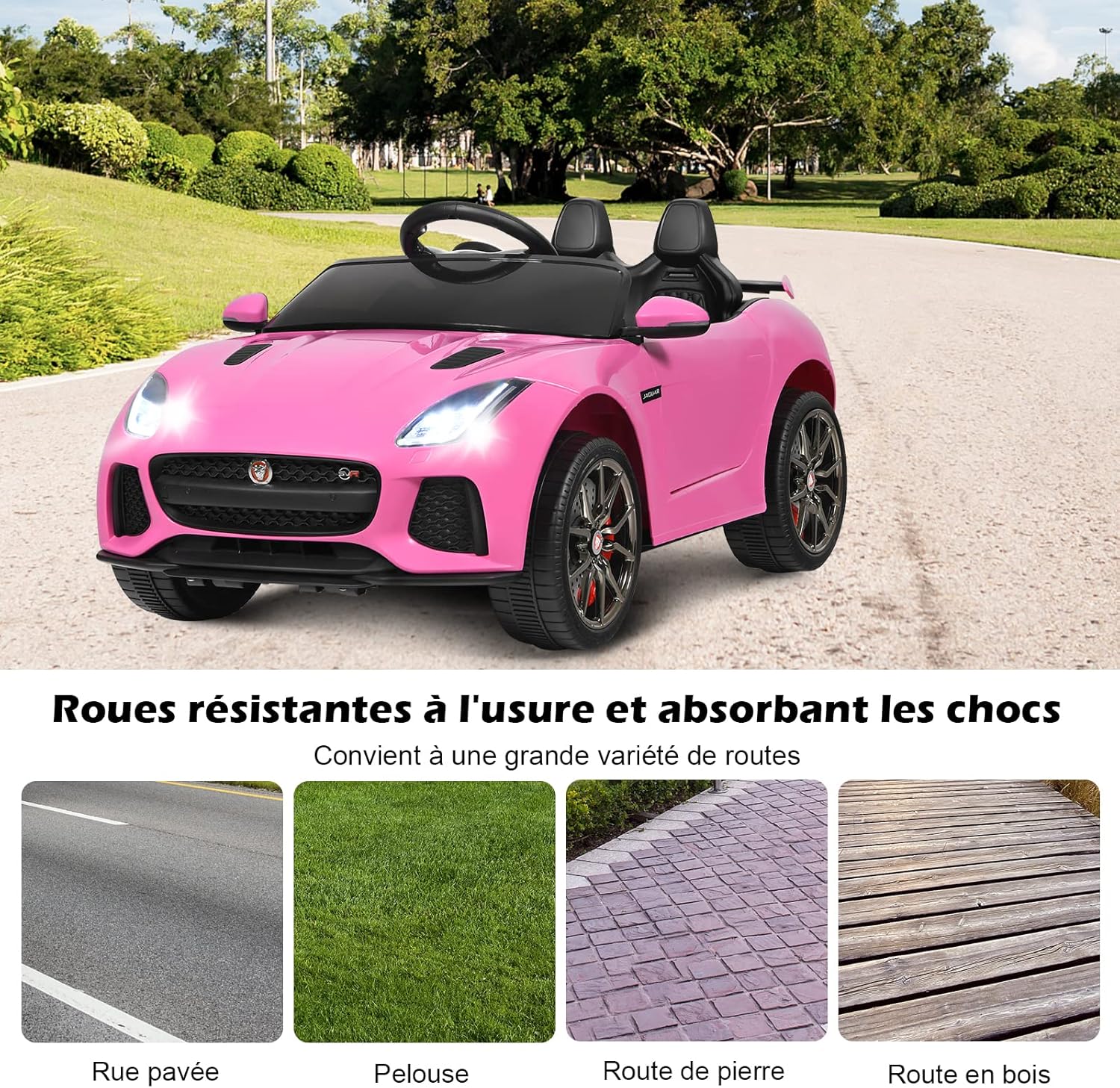 Jaguar voiture electrique enfants 12v avec télécommande 3-5 km/h sons et musique, voiture electrique rose