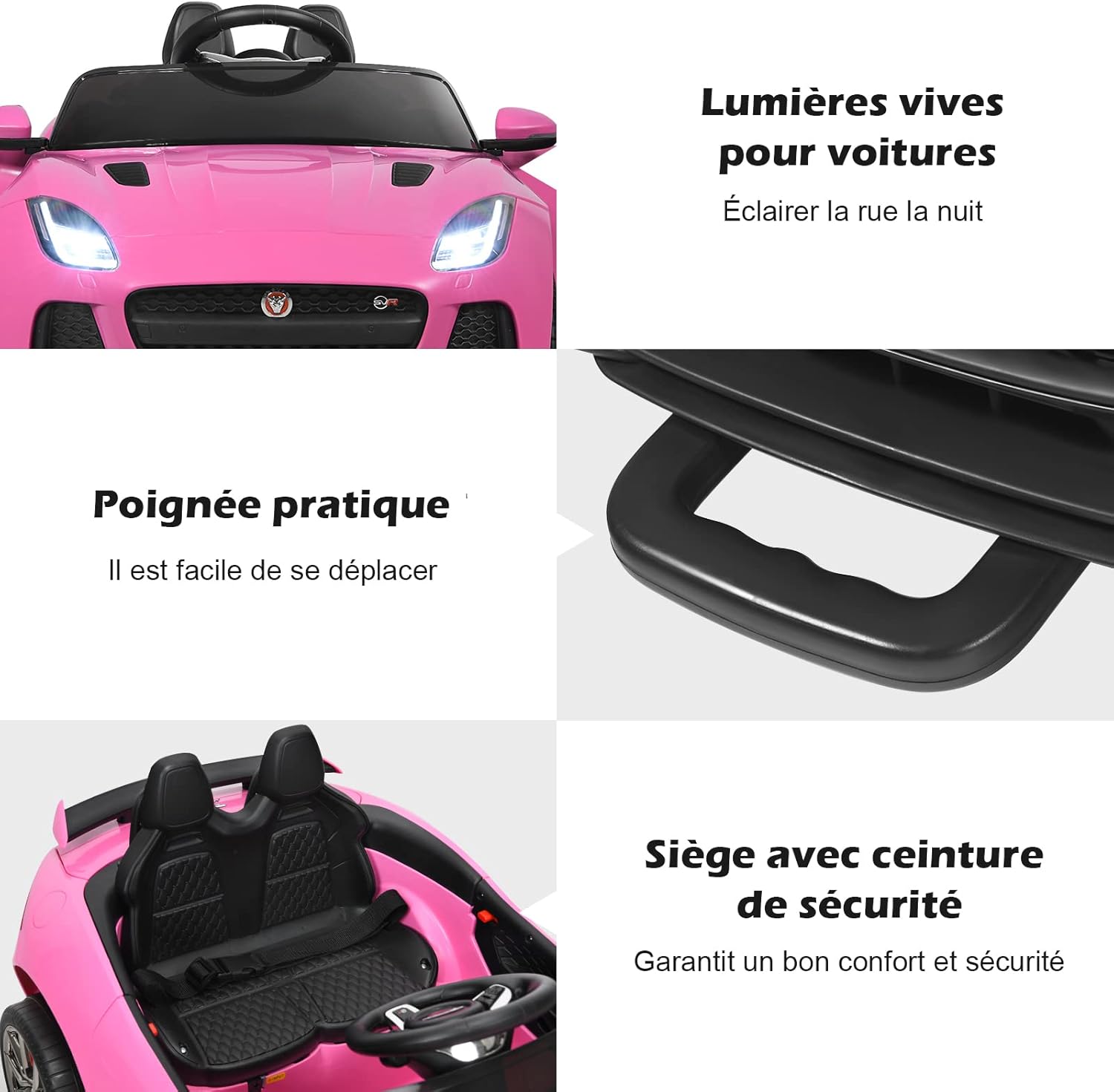 | Libellé | Jaguar voiture electrique enfants 12v avec télécommande 3-5 km/h sons et musique, voiture electrique rose |