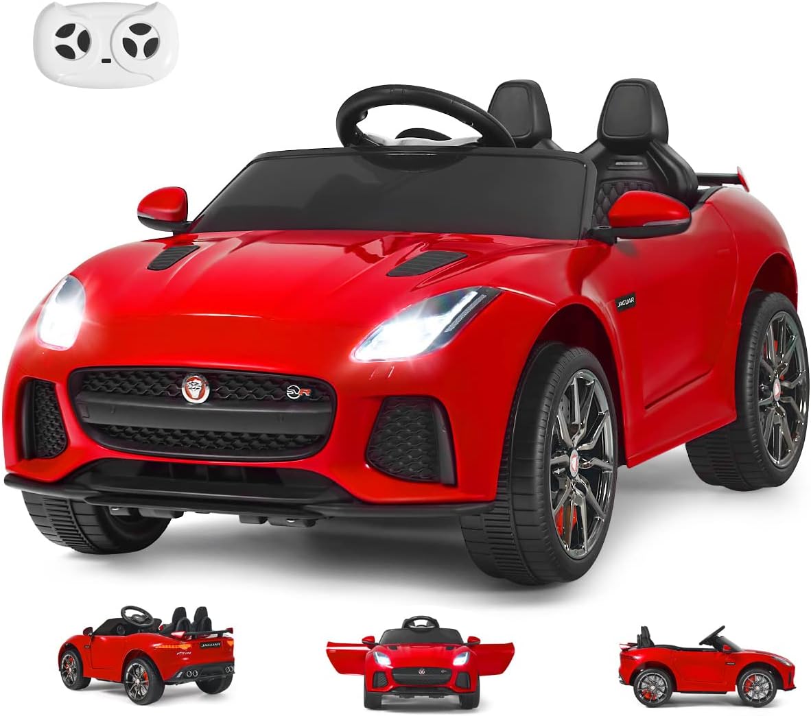 Jaguar voiture electrique enfants 12v avec télécommande 3-5 km/h sons et musique, voiture electrique roug