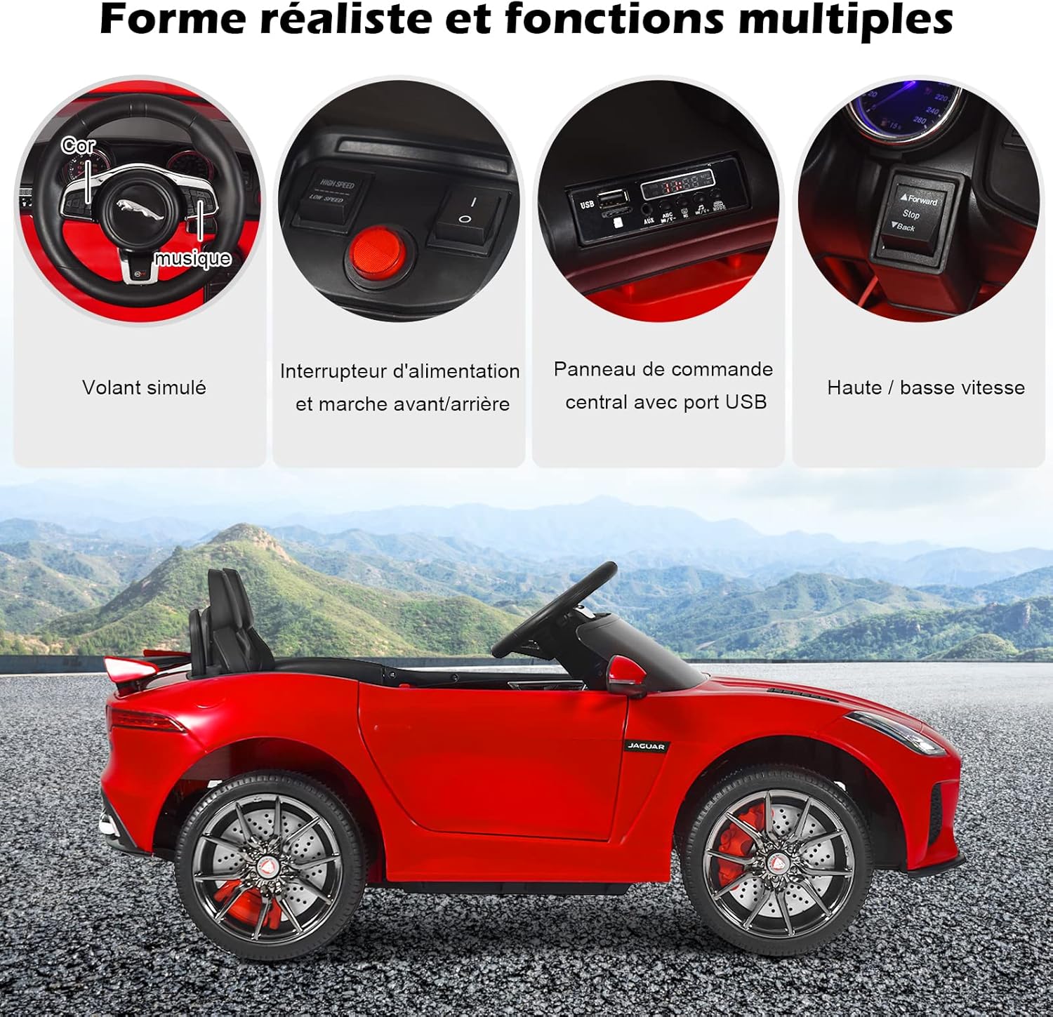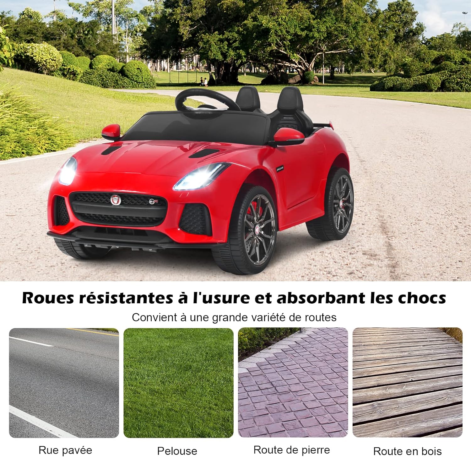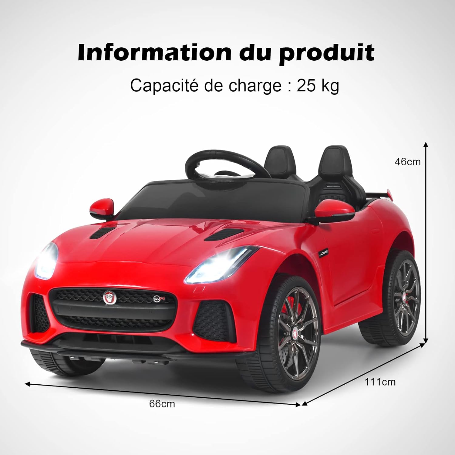 | Libellé | Jaguar voiture electrique enfants 12v avec télécommande 3-5 km/h sons et musique, voiture electrique rouge |