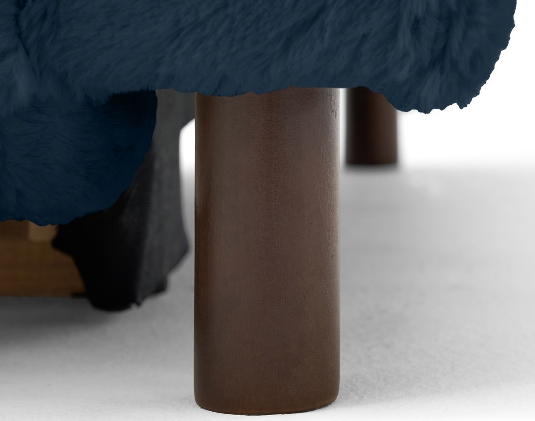- Détail des matières : Assise : Mousse polyuréthane 30Kg/m3 - Dossier : Mousse polyuréthane 28Kg/m3 – Ressorts plats – Structure en bois et panneaux de particules – Revêtement en fausse fourrure – Pieds en bois wengé