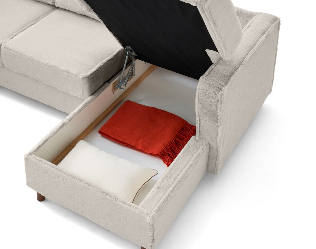 Jake - canapé panoramique d'angle gauche 7 places convertible avec coffre en fausse fourrure