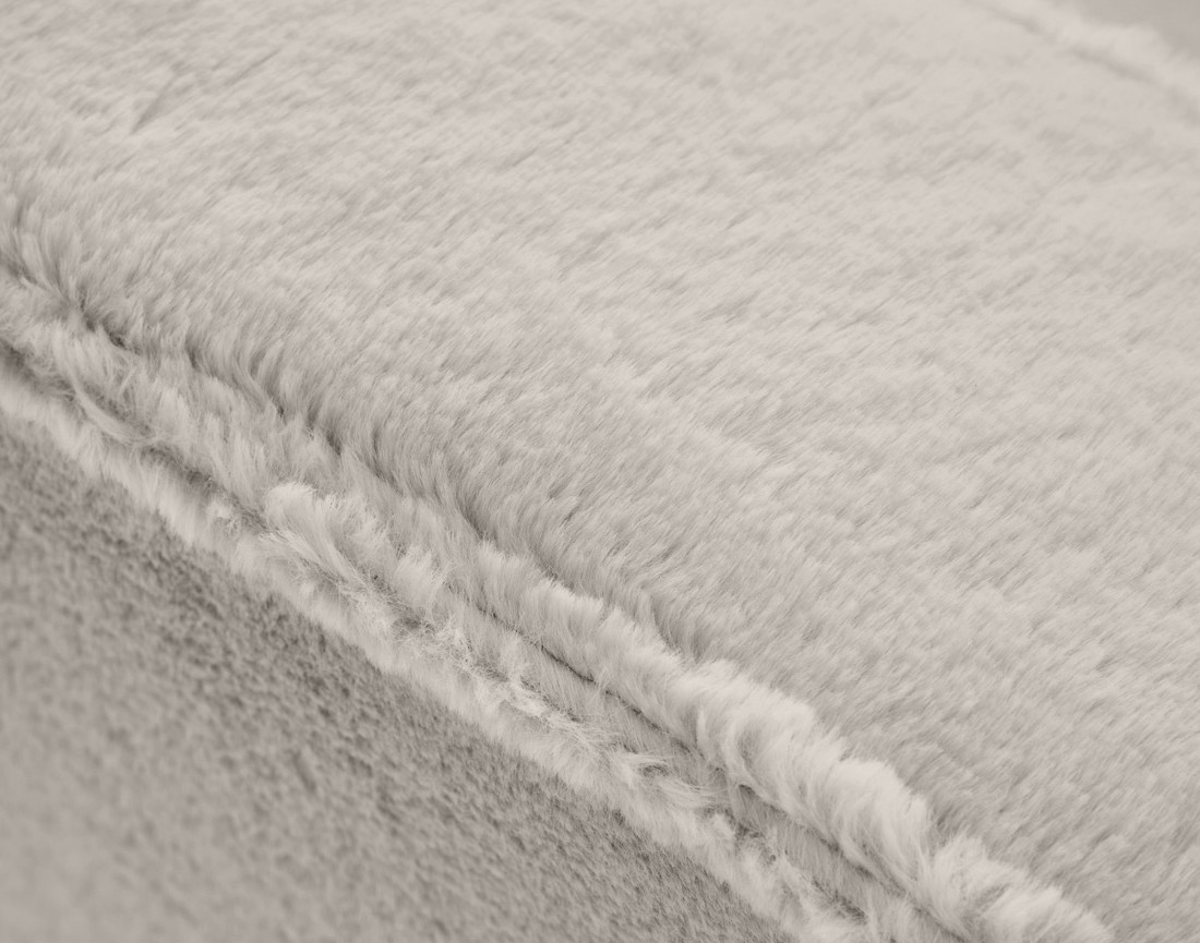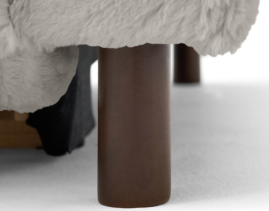 - Détail des matières : Assise : Mousse polyuréthane 30Kg/m3 - Dossier : Mousse polyuréthane 28Kg/m3 – Ressorts plats – Structure en bois et panneaux de particules – Revêtement en fausse fourrure – Pieds en bois wengé