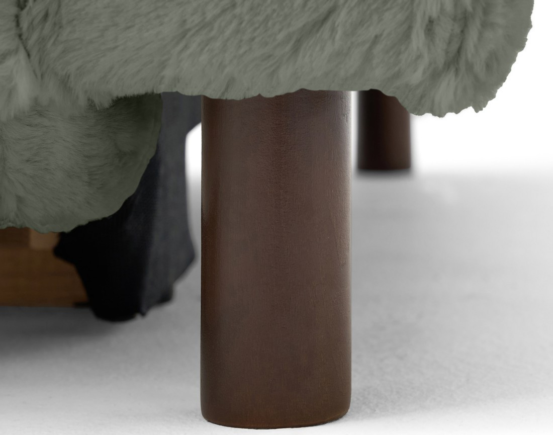 - Détail des matières : Assise : Mousse polyuréthane 30Kg/m3 - Dossier : Mousse polyuréthane 28Kg/m3 – Ressorts plats – Structure en bois et panneaux de particules – Revêtement en fausse fourrure – Pieds en bois wengé