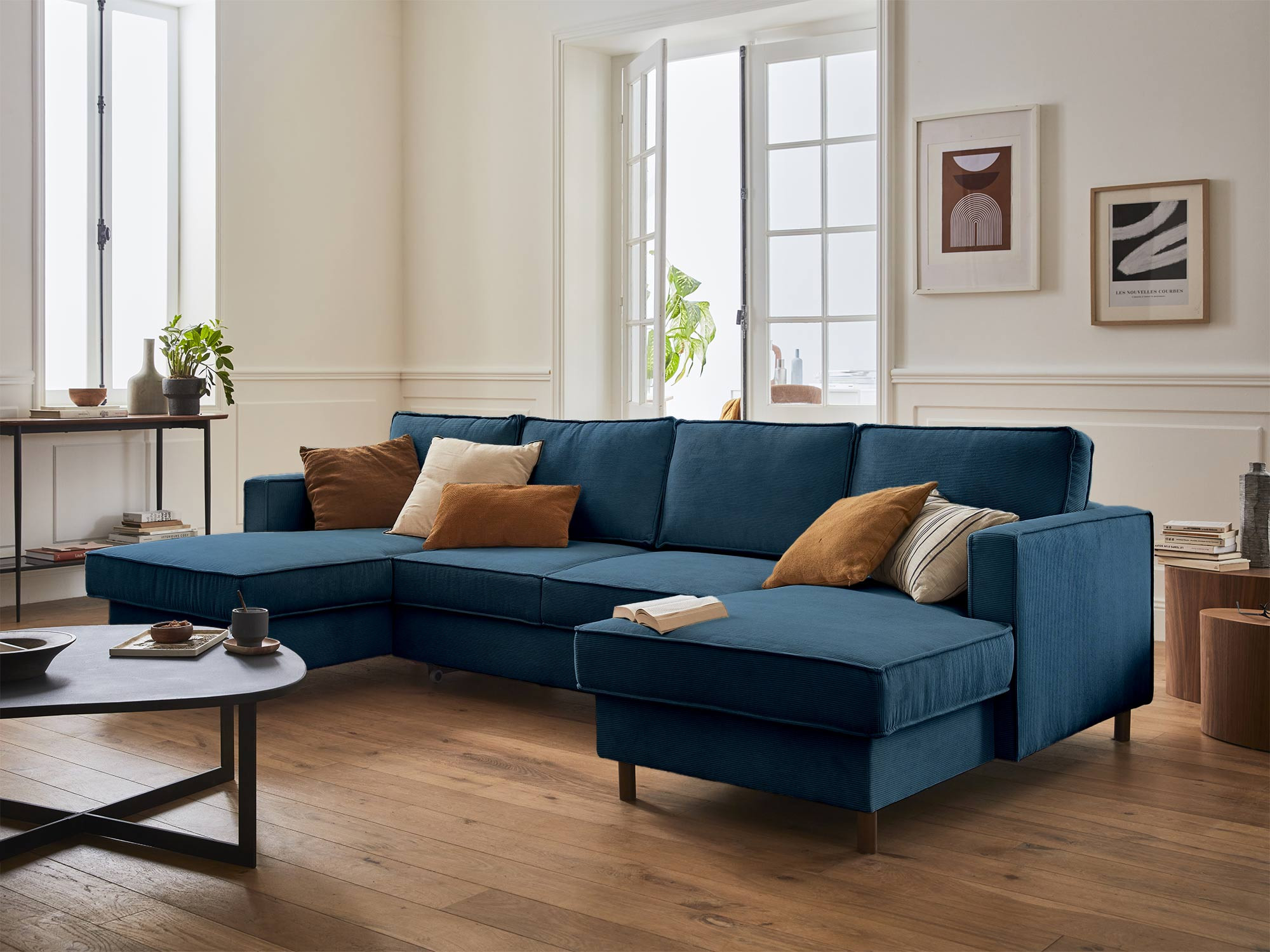 Jake - canapé panoramique en U - 7 places - convertible avec coffre - en velours côtelé