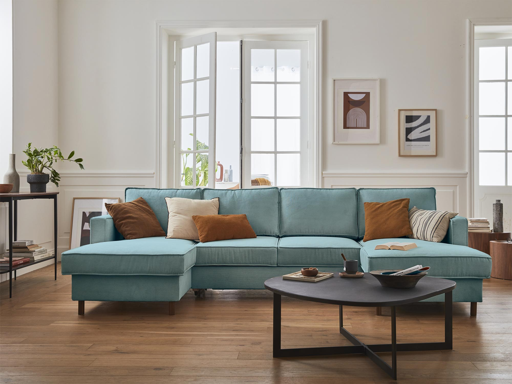 Jake - canapé panoramique en U - 7 places - convertible avec coffre - en velours côtelé