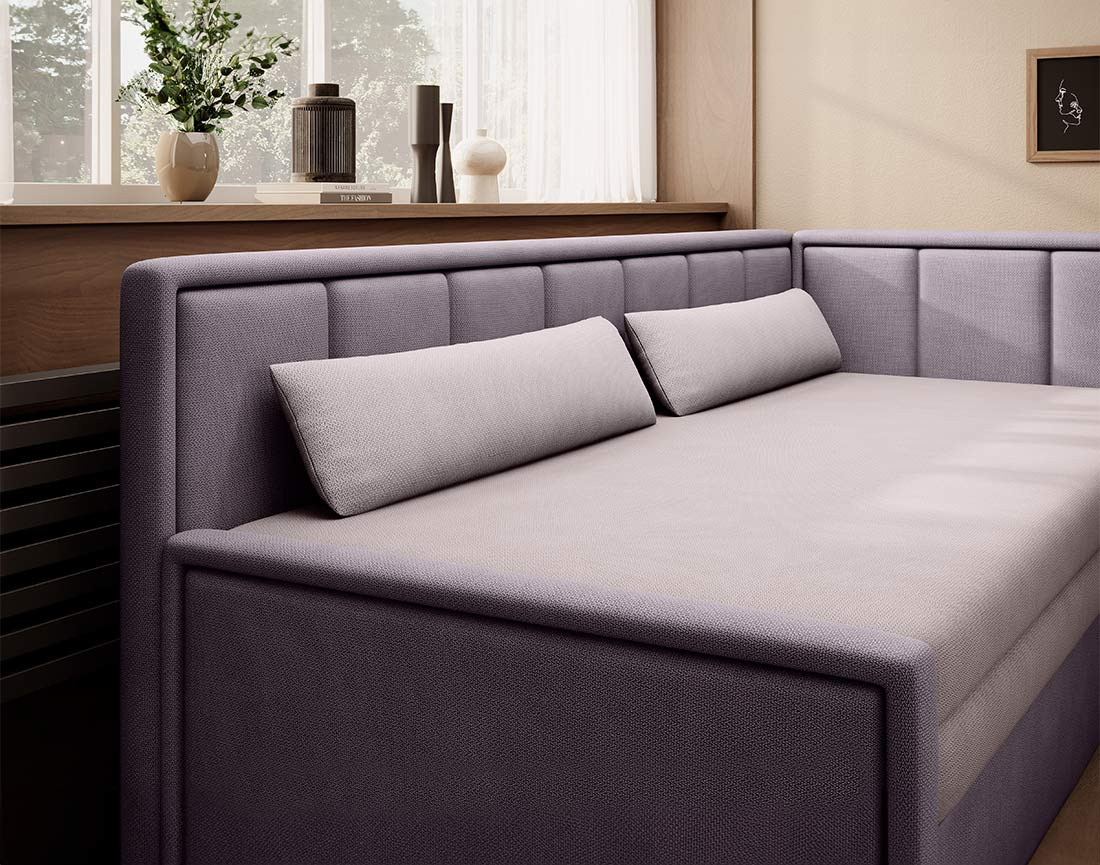 Le coffre de rangement intégré dans son tiroir coulissant et sous la planche servant à recouvrir le coffre mais également à maintenir cette banquette en position convertible, permet également d’organiser votre espace. Rangez-y les draps et les couvertures pour plus de facilité au quotidien.