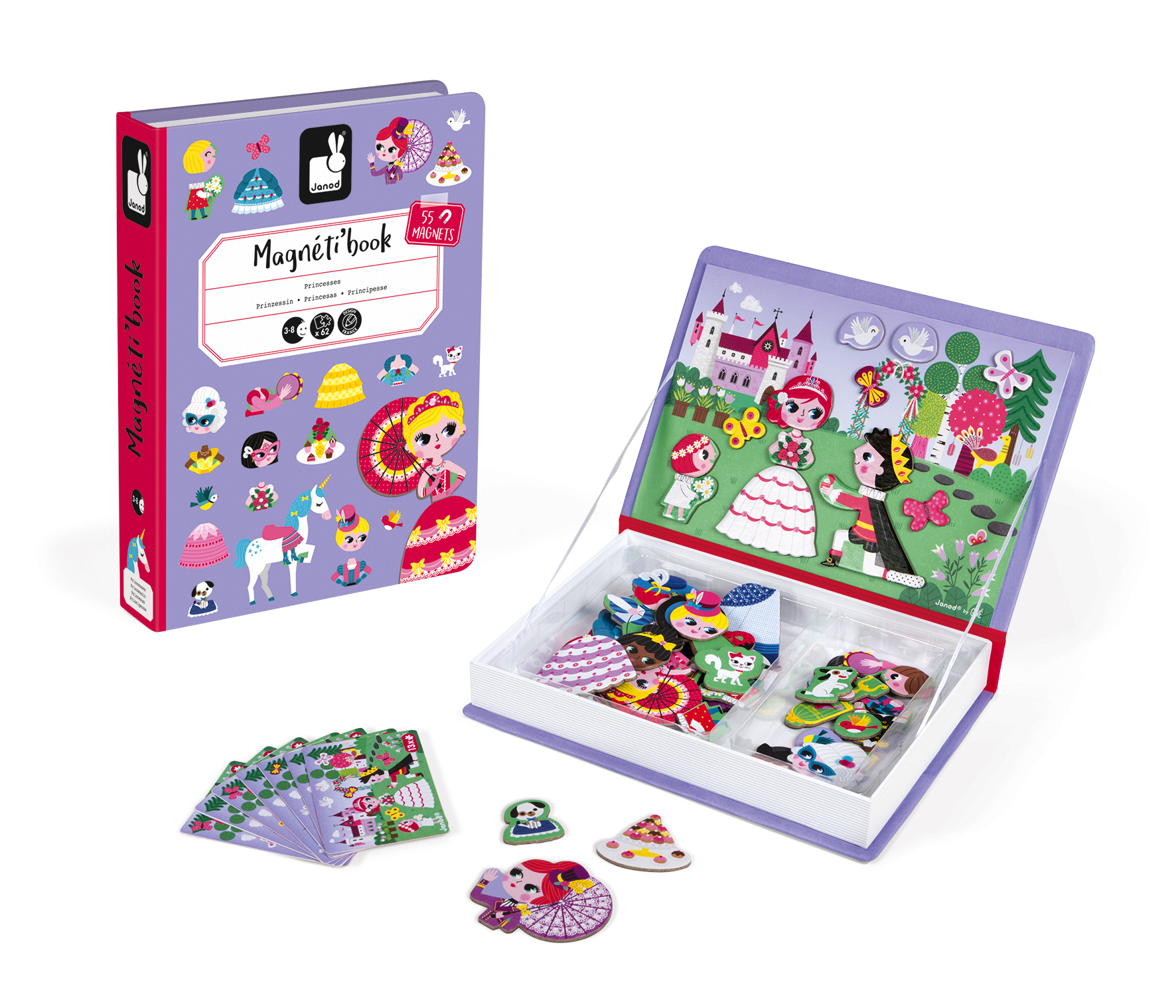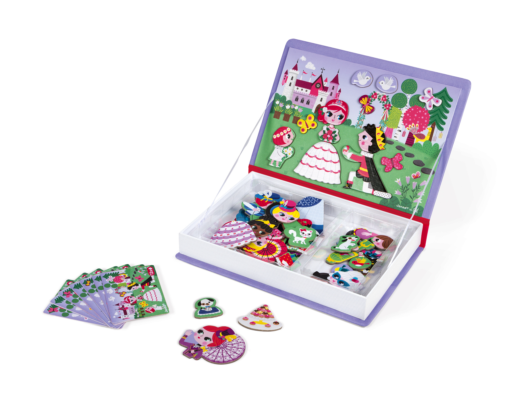 Les Magnéti’Book sont des jeux éducatifs malins qui se transportent et se rangent facilement ! Les enfants adorent créer des personnages et s’inventer des histoires. Avec les Magnéti’Book ça devient facile ! Les magnéti’book sont parfaits pour les longs trajets en voitures ou les attentes qui se prolongent. Ce jeu éducatif magnétique en carton sur le thème des princesses est composé de 55 magnets et de 7 cartes. Une fois le livre ouvert, le but du jeu est de recomposer la scène indiquée sur la carte à l'aide des magnets ou de recréer ses propres scènes ! Pratique, ce jeu se transporte facilement et peut être emmené partout ! Ce produit est composé de matériaux certifiés FSC® et de matériaux contrôlés.