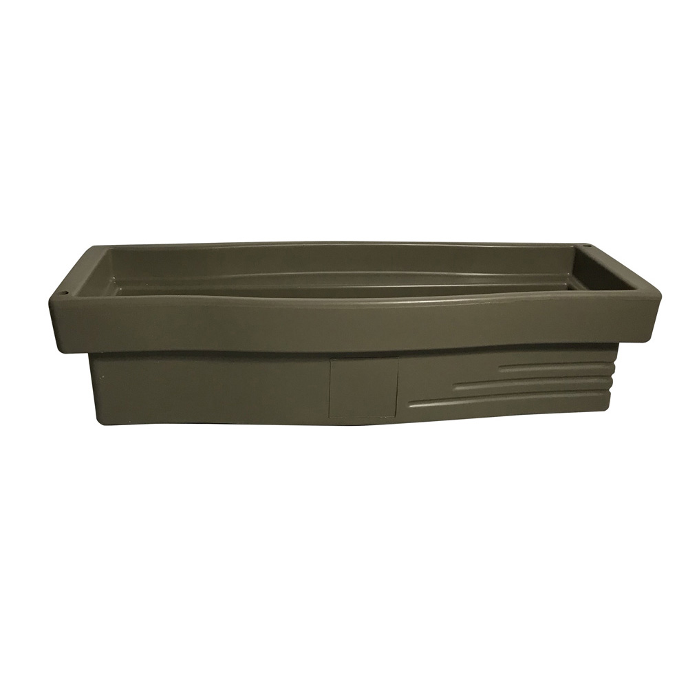 Capacité : 70L. Longueur : 125 cm_Hauteur : 31 cm_ Largeur : 46 cm._Poids : 12 kg_ Pour plantation fleurs et aromates_ Matière : polyéthylène haute densité _Très résistant aux chocs. plage d'utilisation : -30°C à +60°C_ 100% recyclable_Traité anti UV_Marque : PLAST'UP ROTOMOULAGE_Fabrication Française