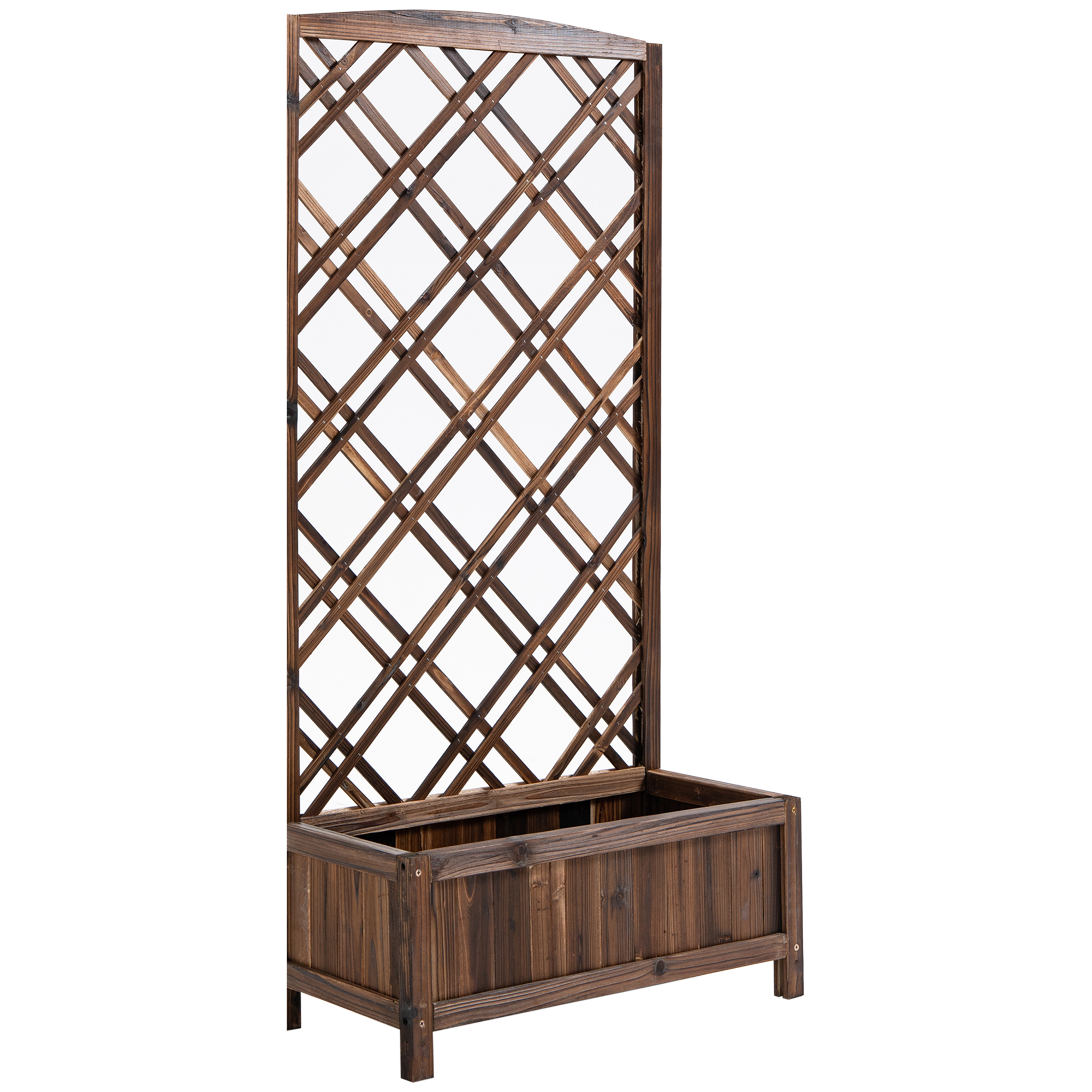 | Libellé | Jardinière avec treillis - bac à fleurs - jardinière sur pied - dim. 60L x 30l x 122H cm bois sapin traité carbonisation |