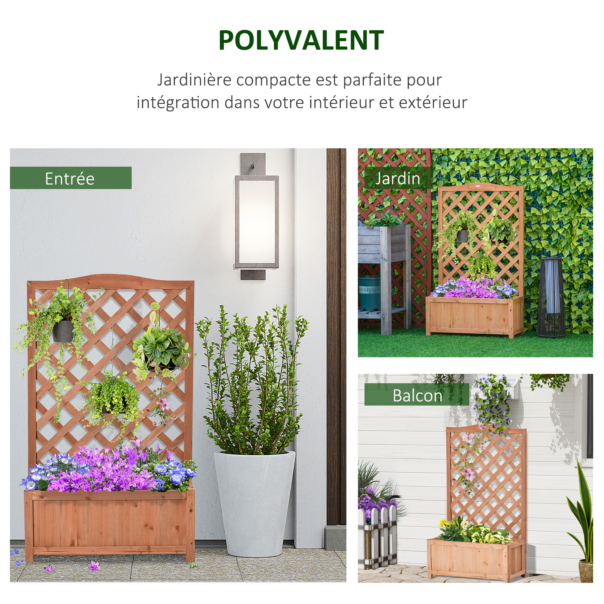 Jardinière avec treillis - bac à fleurs - jardinière sur pied - dim. 70L x 28l x 117H cm - fond à lattes