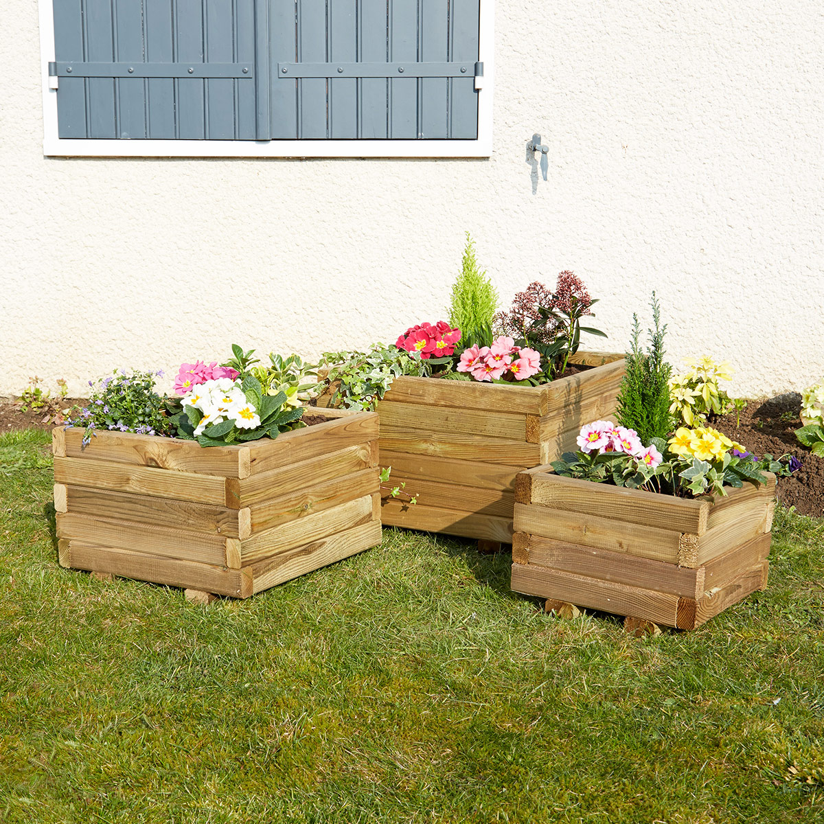 | Libellé | Jardinière carrée 50x50 cm en bois avec feutre géotextile Primo |