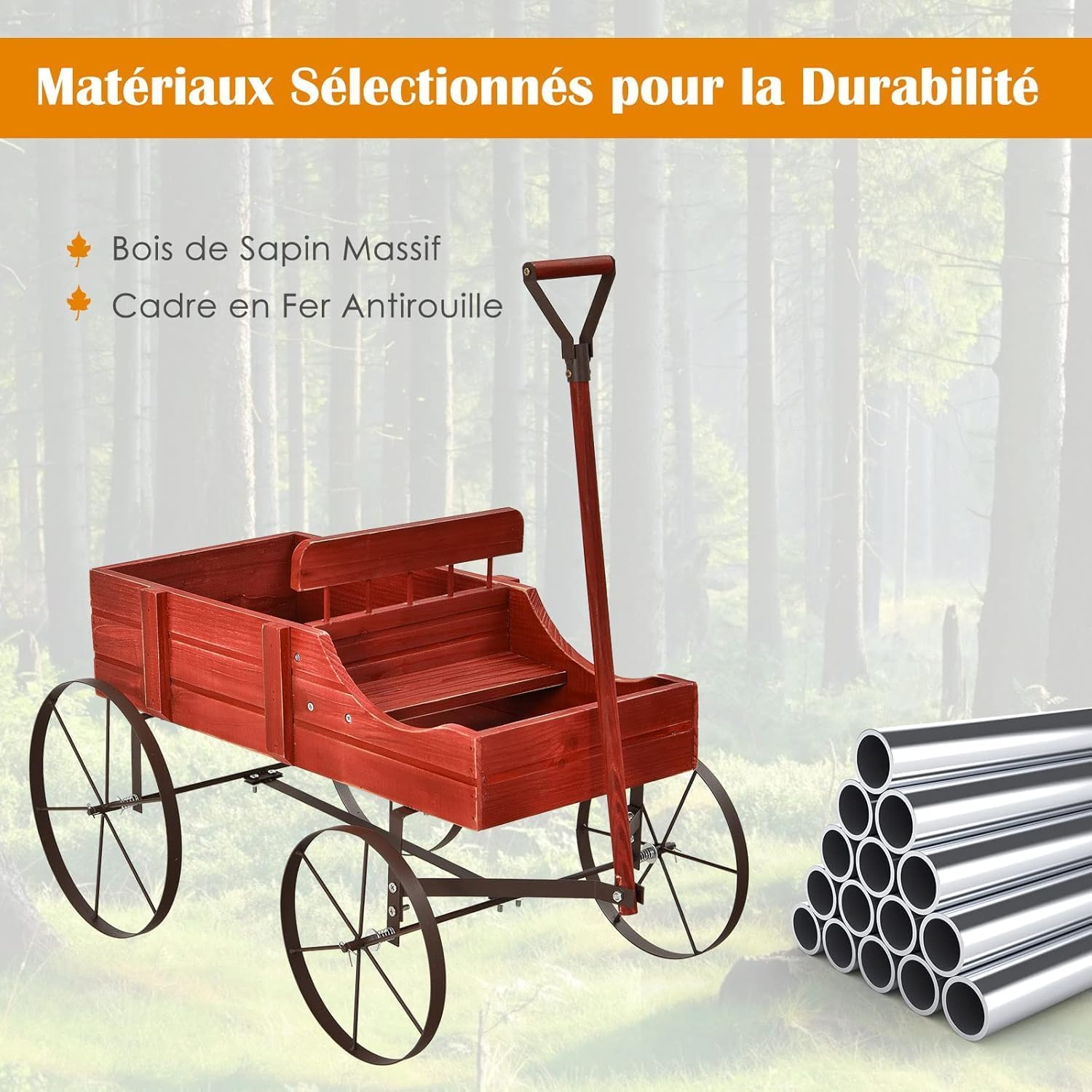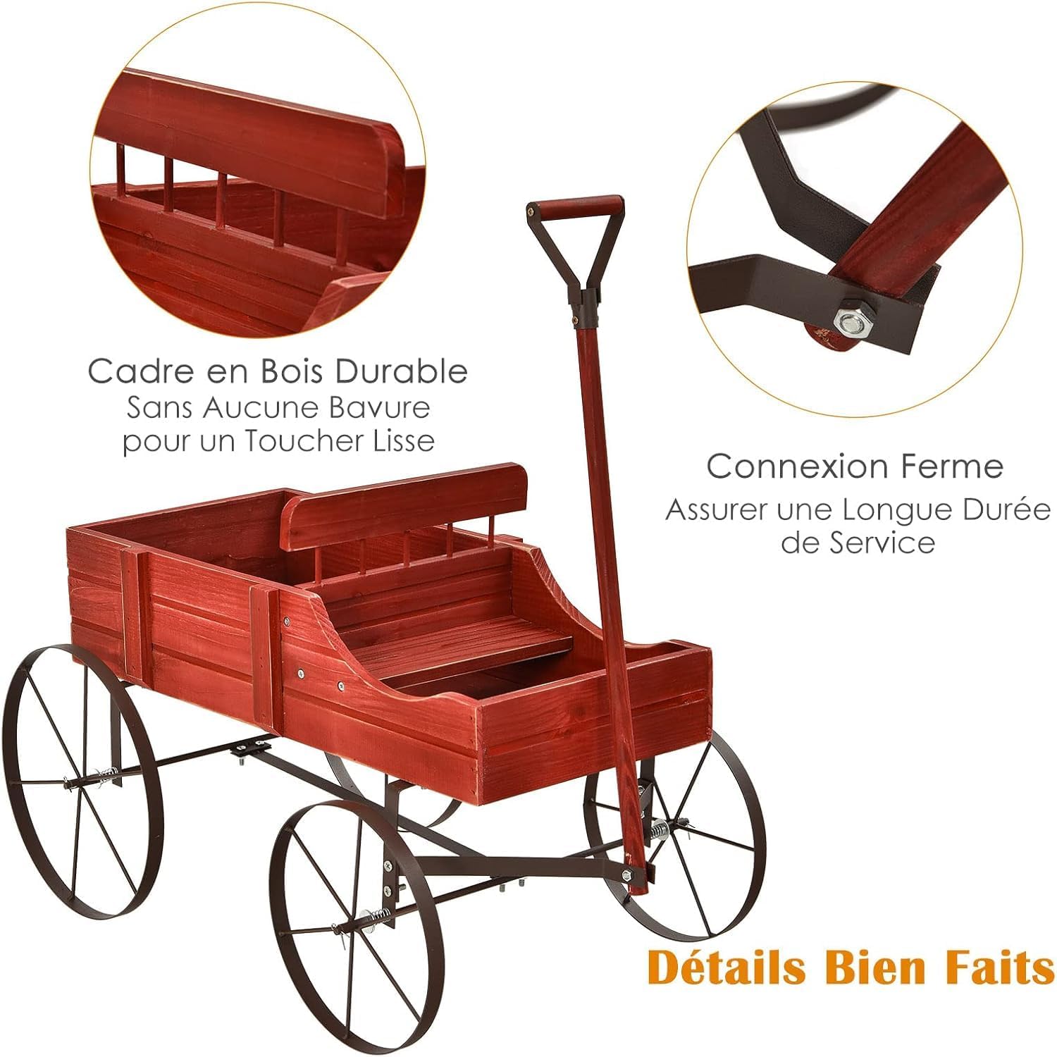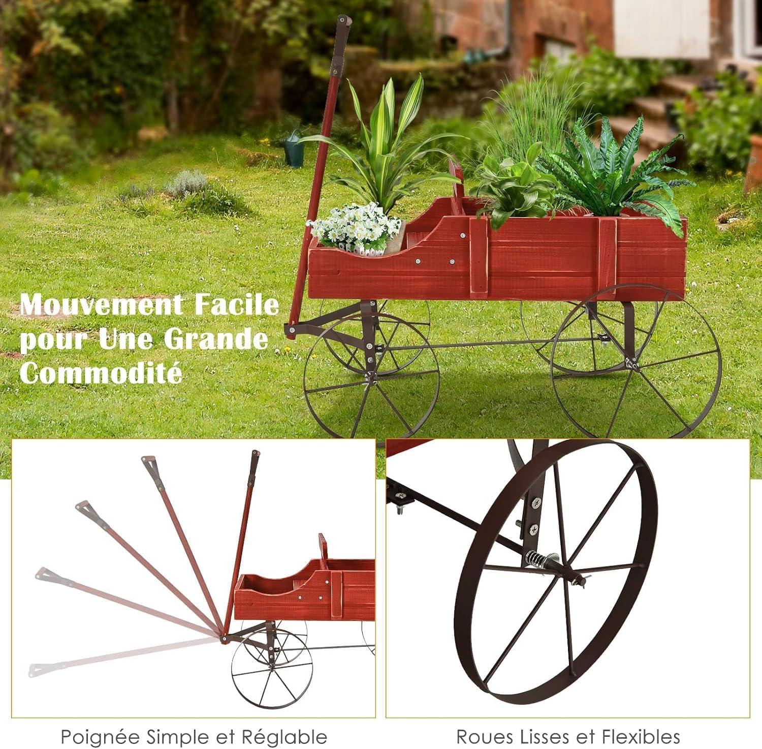 Vous souhaitez faire pousser des plantes dans votre jardin ou sur votre balcon ? Cette jardinière en forme de chariot est idéale pour faire pousser et exposer vos plantes. Composée de 2 espaces de plantation, elle est à la fois large et profonde pour faire pousser différents types de plantes et de fleurs. La poignée située à l'avant du chariot vous permet de le déplacer facilement, de même que 4 roues en métal ; elles assurent sa stabilité sur différents types de terrains.