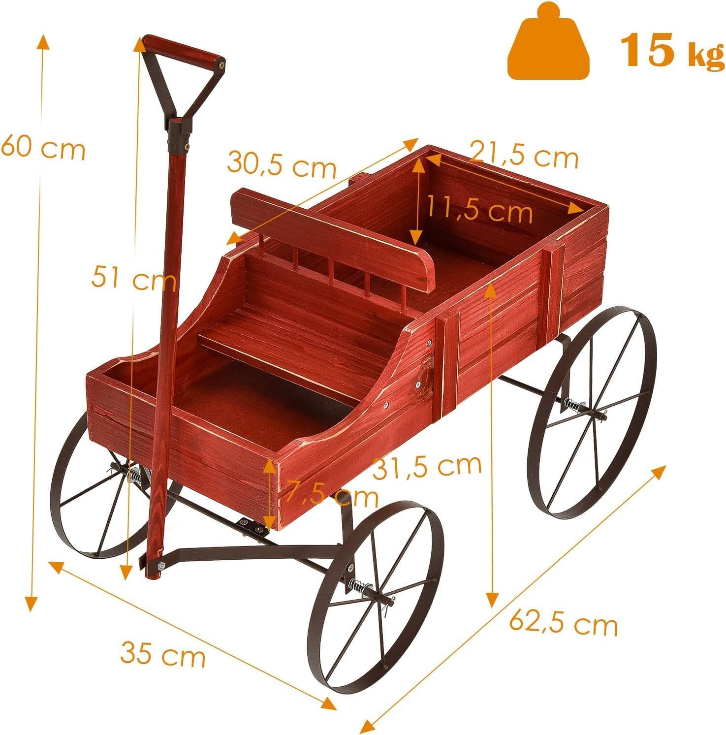 | Libellé | Jardinière forme brouette, brouette décorative en bois avec 4 roues en métal, 2 bac de plantation séparés |