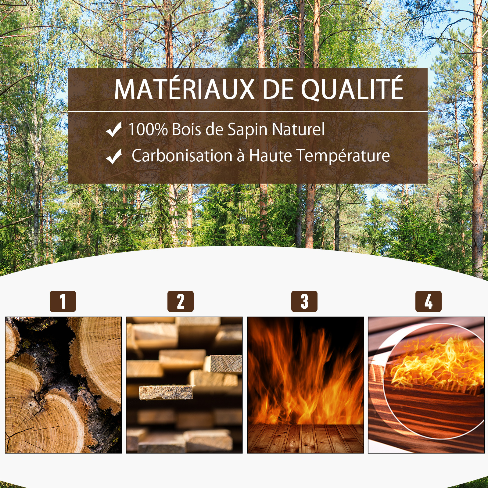 - Conçu et fabriqué en bois massif de sapin traité par carbonisation : usage pérenne sans entretien