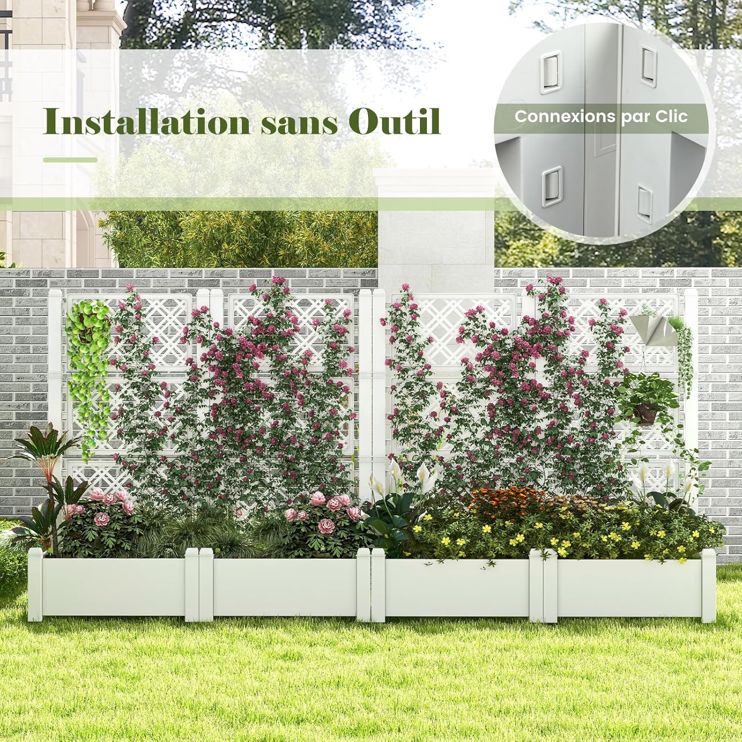 | Libellé | Jardinière surélevée avec treillis, avec trou de drainage, moniteur de niveau d'eau, carré potager blanc |
