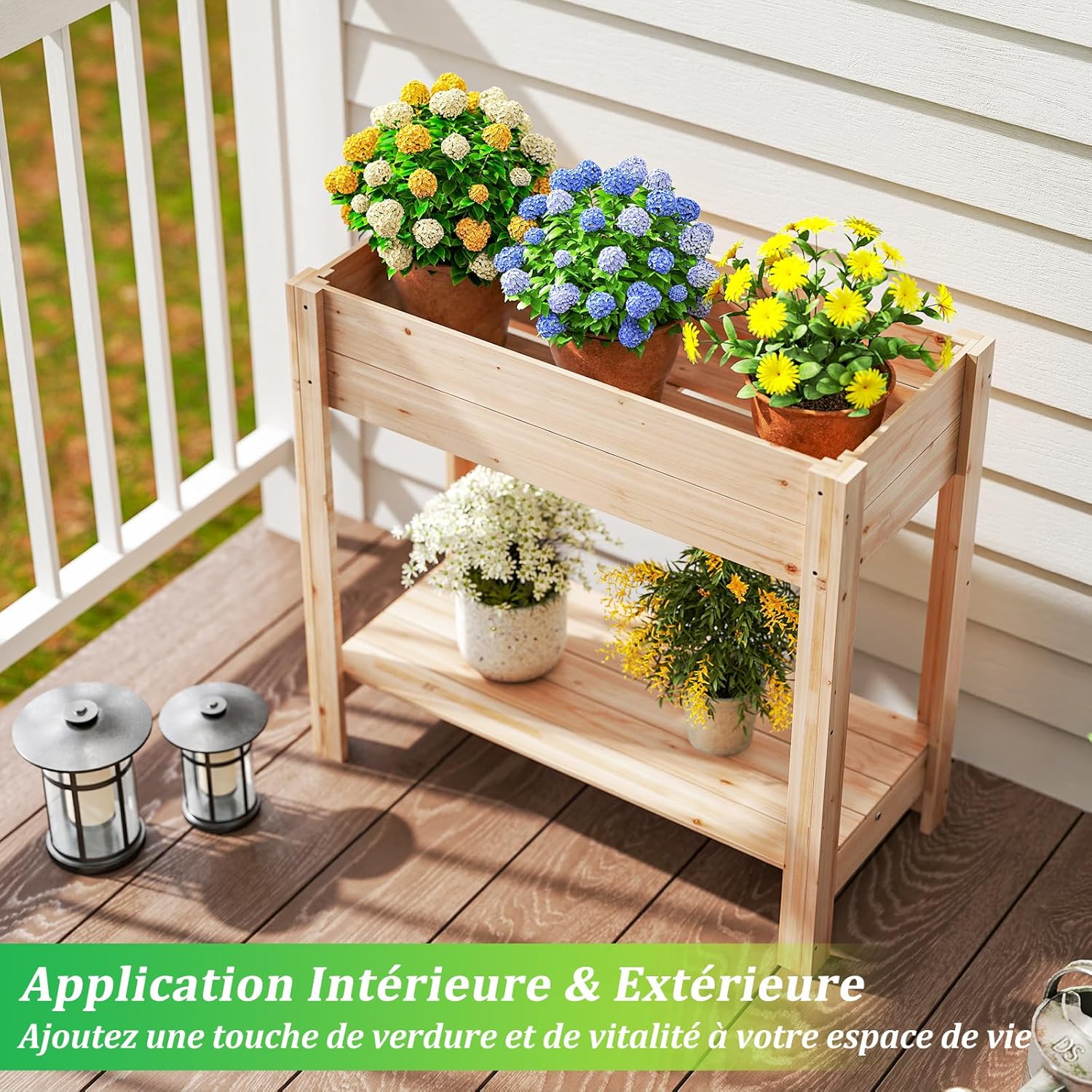 | Libellé | Jardinière surélevée en bois avec pieds, lit de jardin avec étagère, trous de drainage (81 x 38 x 76 cm) |