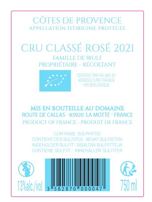 Libellé Jas d'Esclans BIO, 2021 - Côtes de Provence AOP - Rosé - 75 cl