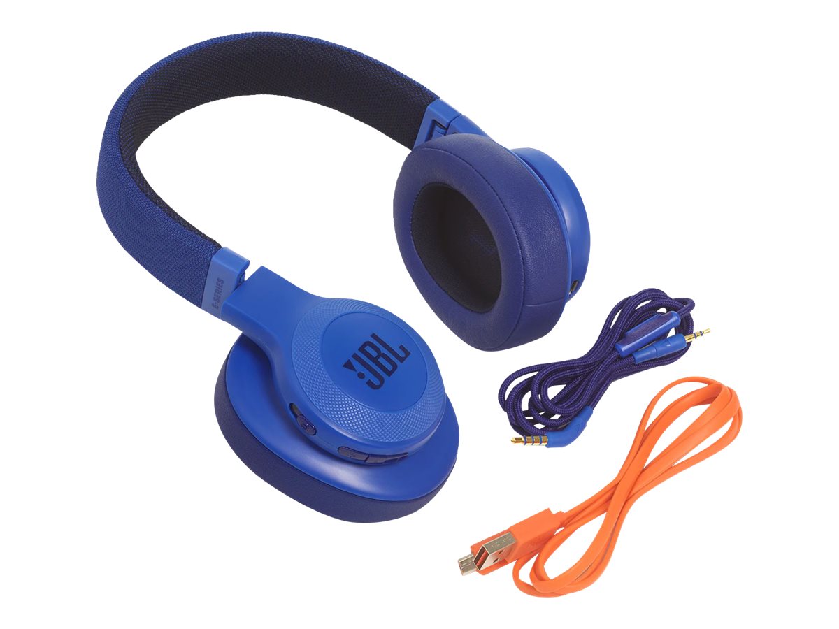 JBL E55BT. Type de produit: Casque. Technologie de connectivité: Avec fil &sans fil, Bluetooth. Utilisation recommandée: Appels/Musique. Fréquence des écouteurs: 20 - 20000 Hz. Couleur du produit: Bleu