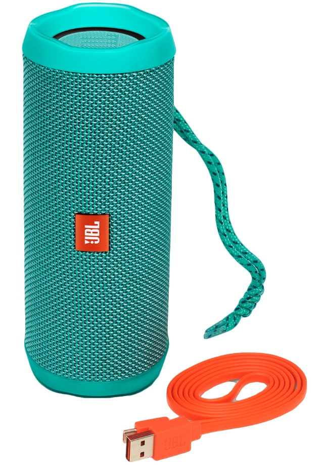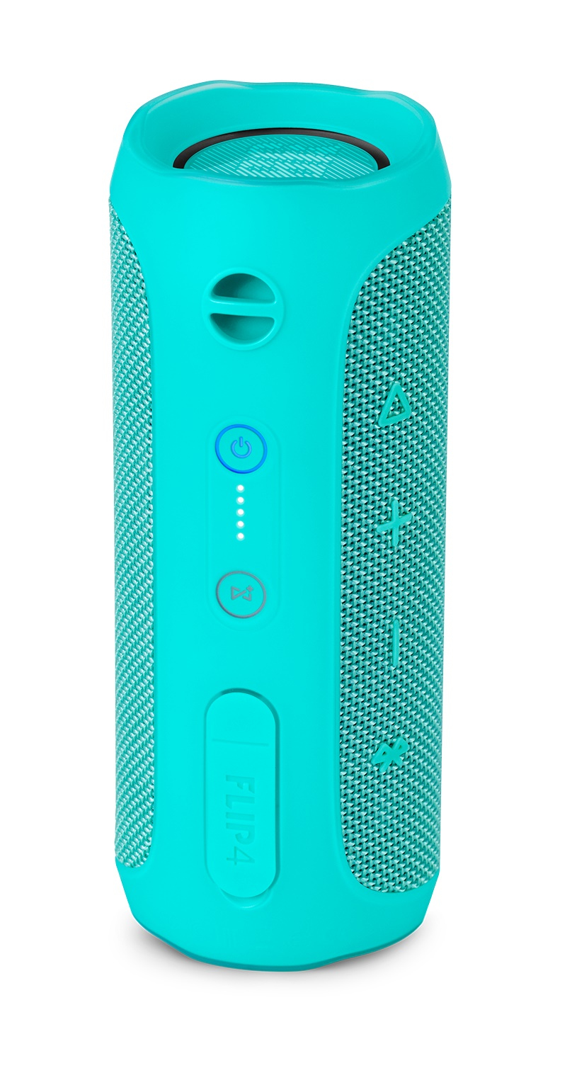 JBL Flip 4. Canaux de sortie audio: 2.0 canaux, Diamètre du haut-parleur: 4 cm. Puissance évaluée de RMS: 16 W, Gamme de fréquence: 70 - 20000 Hz, Rapport signal-sur-bruit: 80 dB. Technologie de connectivité: Sans fil, Profils Bluetooth: A2DP, AVRCP, HFP, HSP. Type de produit: Enceinte portable mono, Couleur du produit: Turquoise, Conception du produit: Cylindre. Utilisation recommandée: Universel
