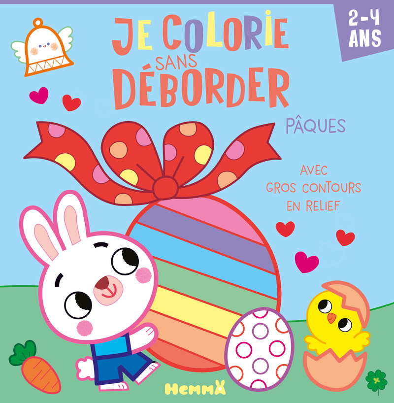 Des œufs, des poussins, des lapins... Colorier Pâques sans dépasser, c'est facile grâce aux gros contours en relief colorés !