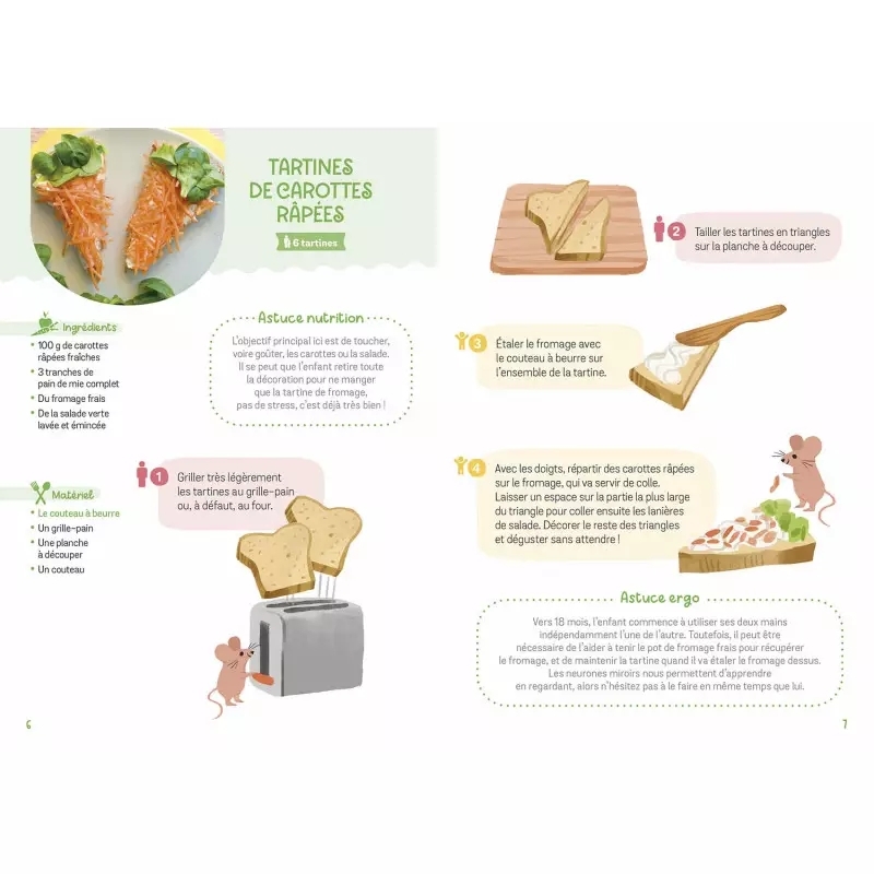 Pars à la découverte des aliments et de la cuisine grâce à ce coffret spécialement conçu pour les enfants à partir de 18 mois! p Un magnifique coffret spécialement conçu pour cuisiner avec son tout-petit de 18 mois et plus. A cet âge, l'enfant commence à être autonome dans la diversification de son alimentation et pars à la découverte de nouveaux goûts, de nouvelles textures. Ce coffret permet aux parents et aux enfants de passer un moment tendre et convivial autour de la cuisine et du repas, pour aborder cette étape en toute sérénité. Une nutritionniste pédiatrique et une ergothérapeute pédiatrique s'associent pour proposer un coffret contenant: br/ - Un livre de 20 recettes adaptés à l'enfant de 18 mois et plus avec de nombreuses astuces et des conseils br/ - De nombreux accessoires adaptés à la motricité de l'enfant de 18 mois et plus br/ - Un coupe-légumes en bois br/ - Un couteau pour étaler en bois br/ - 3 petits pots verseurs de 50, 100 et 200 ml avec un code couleur br/ - Un petit fouet avec une grosse poignée br/ br/ Pour un moment de partage et de plus grande autonomie autour du repas. /p