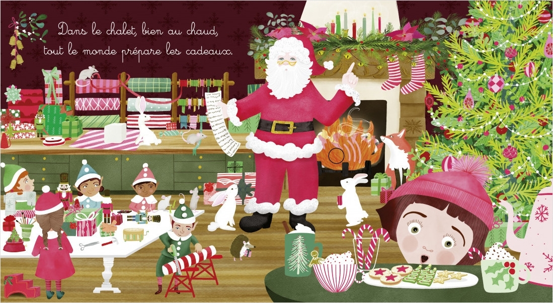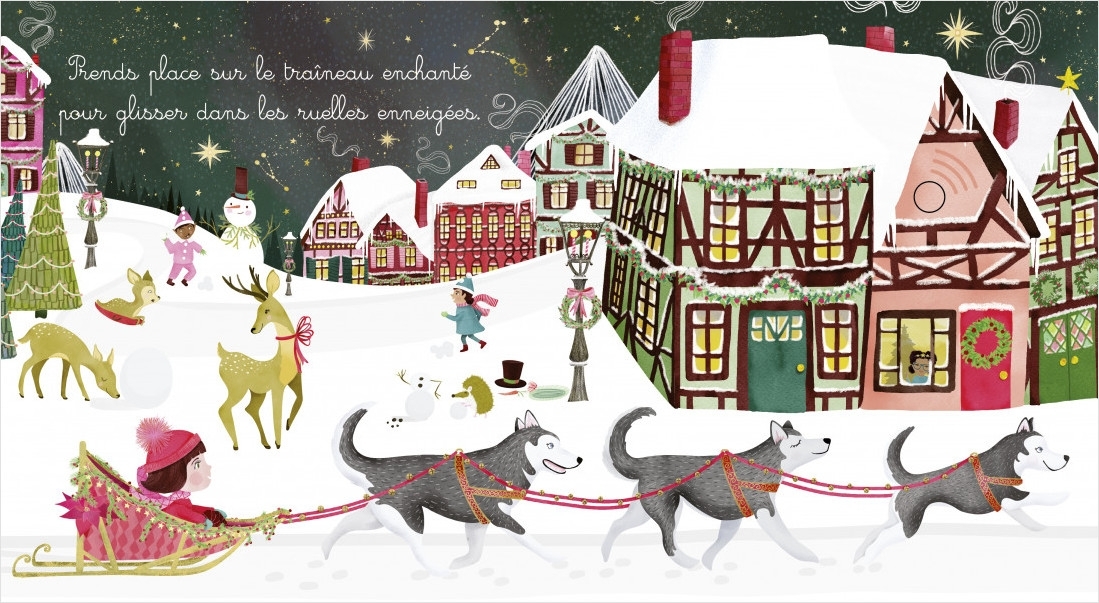 C'est une invitation à un voyage musical au pays du Père Noël que nous propose cet ouvrage. Au fil des pages, suis les chiens de traineau, patine avec les pingouins, découvre l'atelier du Père Noël, écoute les clochettes et le rire de papa Noël. Les sons magiques se mêlent à des airs de Noël et nous entraine dans un rêve !