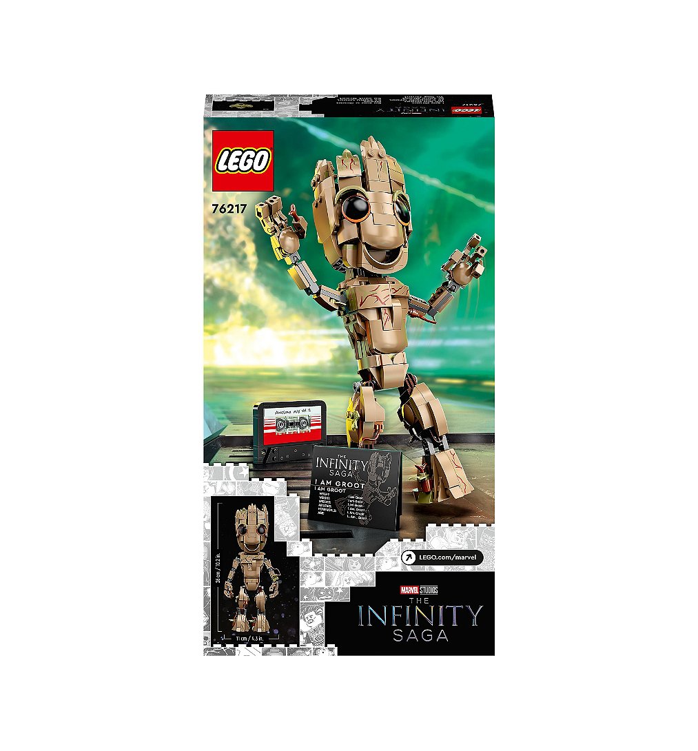 Impressionnez les jeunes fans des personnages Marvel et des films de la célèbre saga avec le mignon modèle de construction LEGO Marvel Je s'Appelle Groot (76217). L'adorable et espiègle figurine de bébé Groot est hautement articulée, facile à positionner et à poser comme les enfants le souhaitent. Tout fan des Gardiens de la Galaxie Vol. 2 et du monde du Marvel Cinematic Universe sera familier avec la célèbre scène où bébé Groot danse. Les enfants peuvent maintenant recréer cette scène, et bien d'autres, avec ce modèle détaillé et articulé du mignon personnage de Marvel. Le super-héros jouet est facile à positionner et à poser, prêt à danser au rythme de la musique sur la cassette pour mannequins incluse. L'ensemble comprend une plaque à placer sous le modèle et des instructions numériques via l'application gratuite Instructions de montage LEGO, avec laquelle les enfants peuvent visualiser, zoomer et faire pivoter le modèle du super-héros Marvel pendant qu'ils construisent. Les jeux de construction LEGO Marvel offrent aux jeunes super-héros de grandes idées de jeu créatif et des heures d'amusement sans fin. Ce jouet LEGO Marvel est une idée de cadeau spécial pour un anniversaire, pour Noël ou toute autre occasion, pour les enfants de 10 ans et plus qui sont fans des films Les Gardiens de la Galaxie, des personnages Marvel et du super mignon bébé Groot. Le modèle hautement articulé mesure plus de 26 cm de hauteur. Contient 476 pièces.