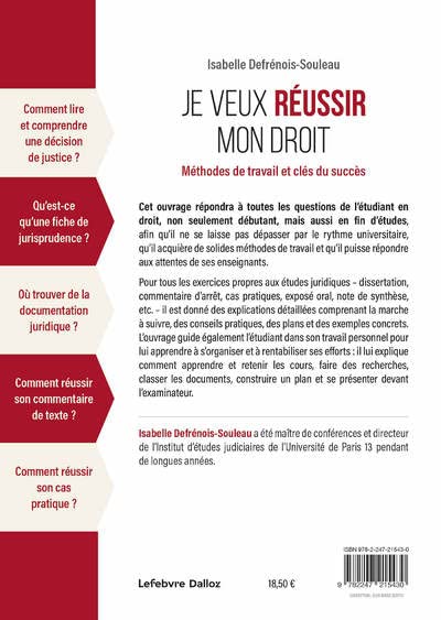 | Titre de l'œuvre | Je veux réussir mon droit. Méthodes de travail et clés du succès.. 13e éd. - Méthodes de travail et |