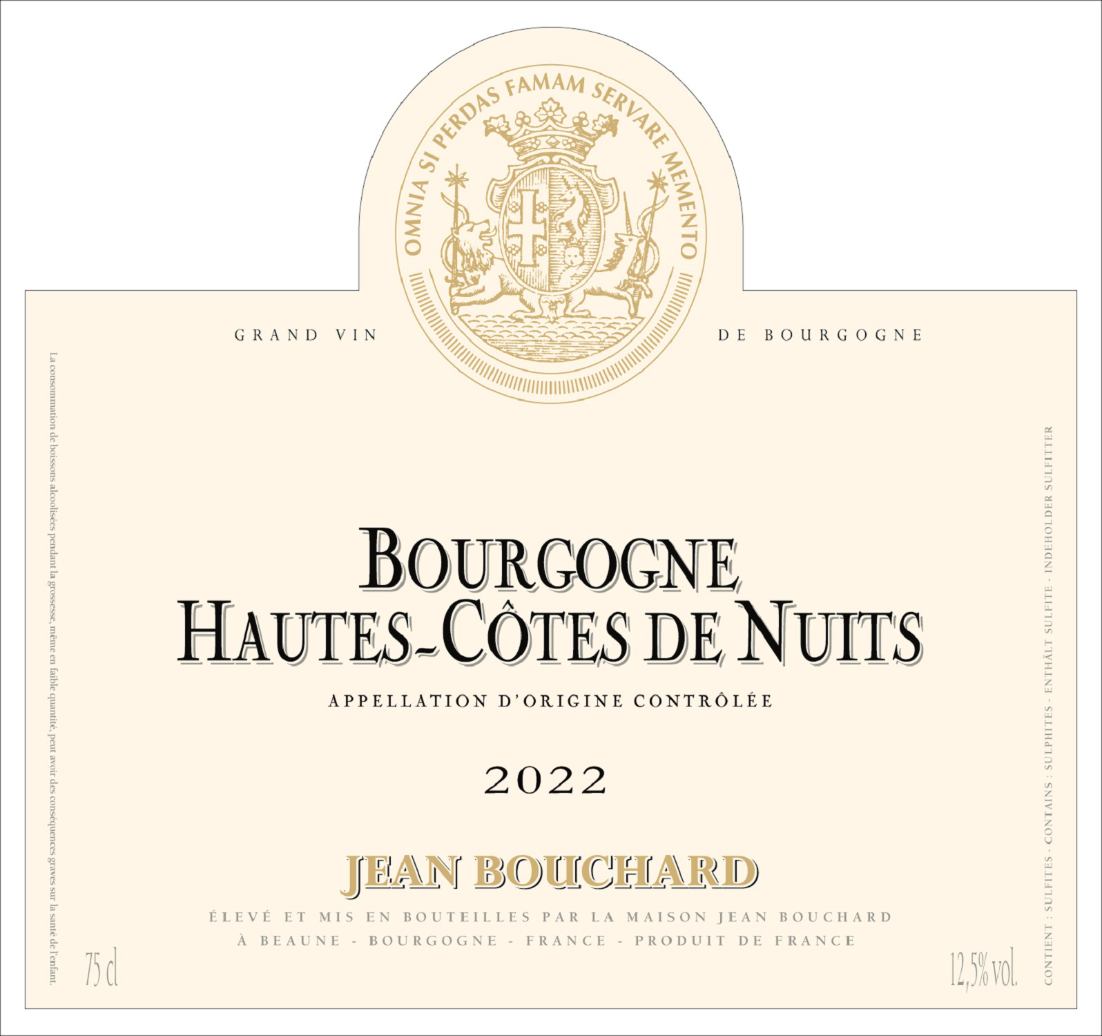 | Libellé | Jean Bouchard, 2022 - Bourgogne Hautes-Côtes de Nuits AOP - Rouge - 75 cl |