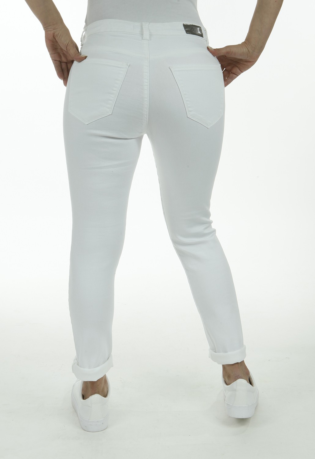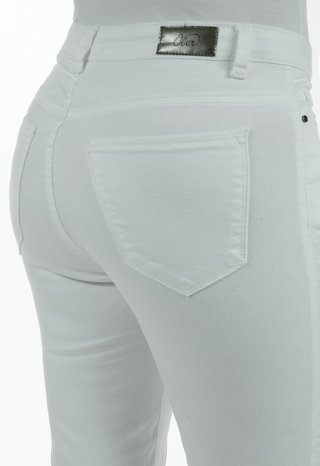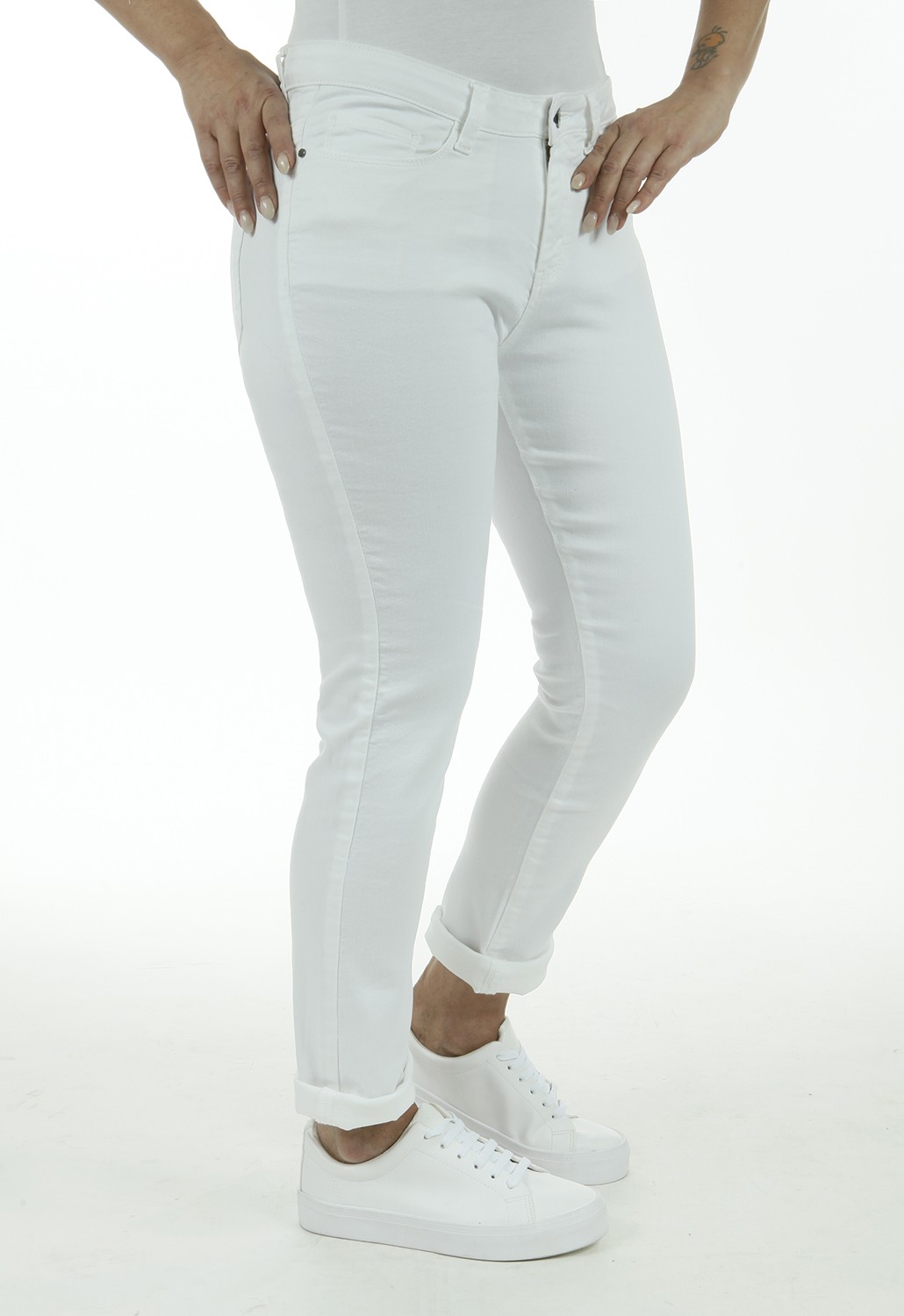 Jeans slim coupe confort Jeans, 5 poches, coupe ajustée, taille haute, fermeture zippée, denim ultra stretch couleur, surpiqûres deux tons, 81% coton 17% polyester 2% élasthanne. Longueur d'entrejambe : tailles 40 et 42 : 78 cm; tailles 44, 46 et 48 : 80 cm; tailles 50 et 52 : 82 cm Le mannequin porte une taille 40.