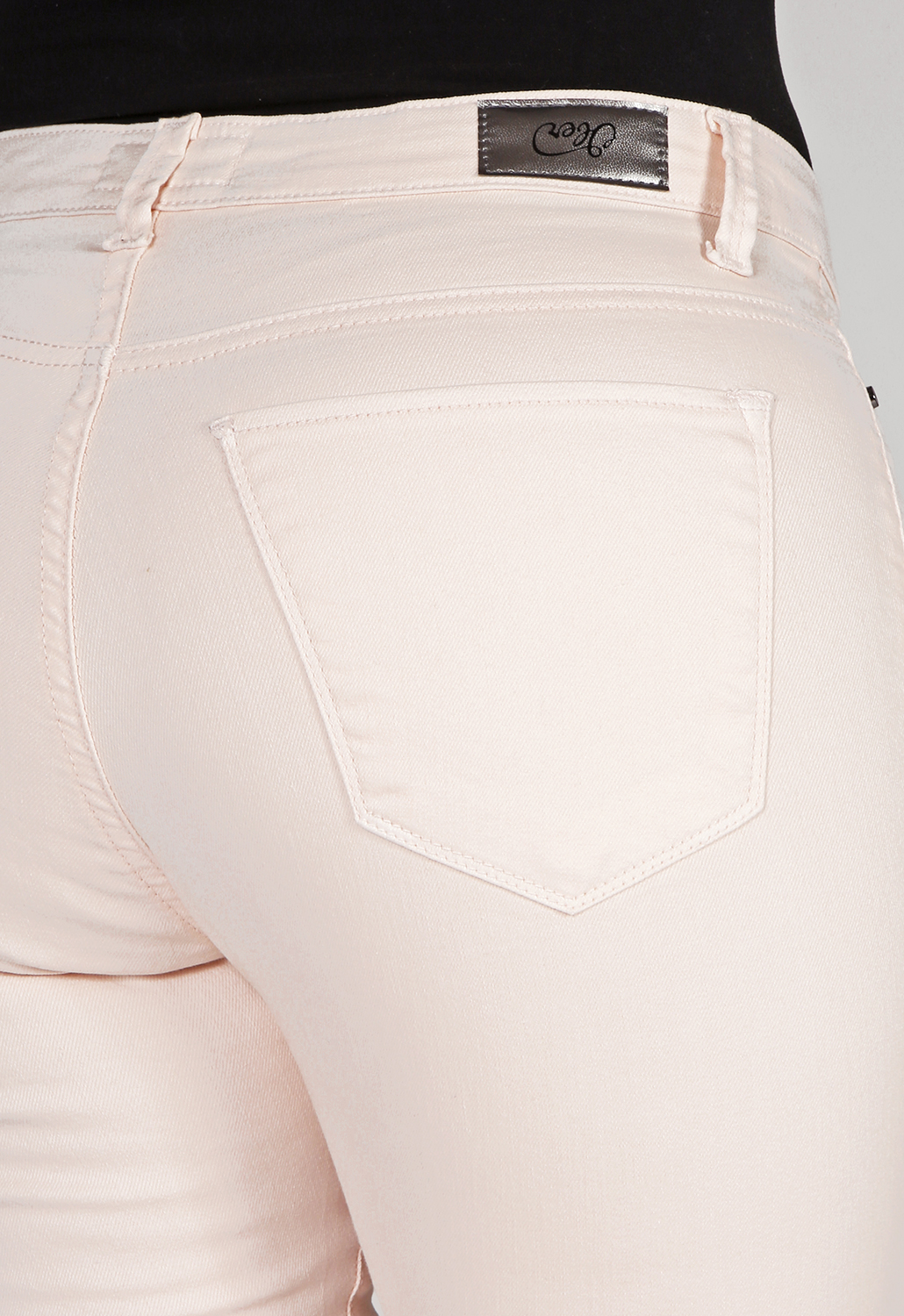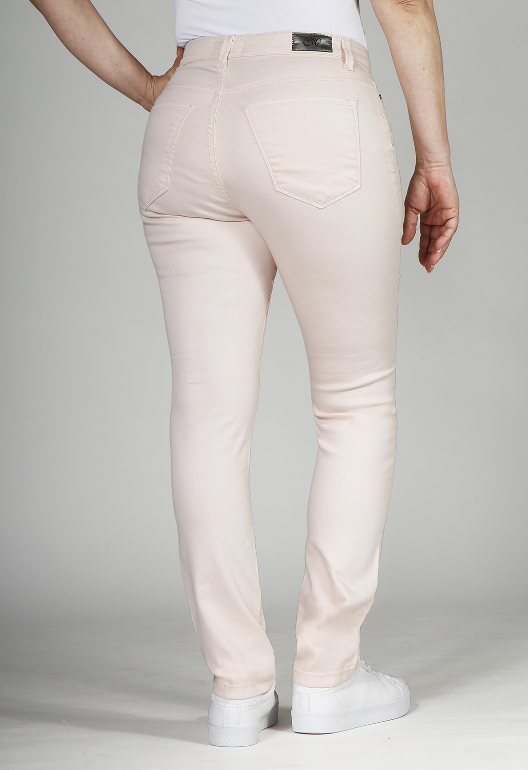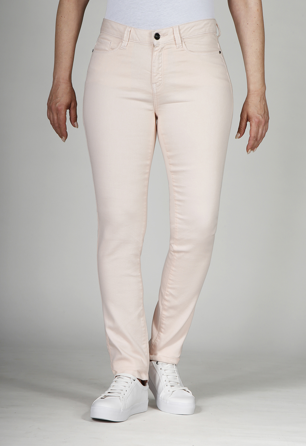 Jeans slim coupe confort Jeans, 5 poches, coupe ajustée, taille haute, fermeture zippée, denim ultra stretch couleur, surpiqûres deux tons, 81% coton 17% polyester 2% élasthanne. Longueur d'entrejambe : tailles 40 et 42 : 78 cm; tailles 44, 46 et 48 : 80 cm; tailles 50 et 52 : 82 cm Le mannequin porte une taille 40.