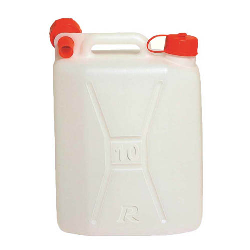 Jerrican 10L en polyéthylène haute densité (PEHD).