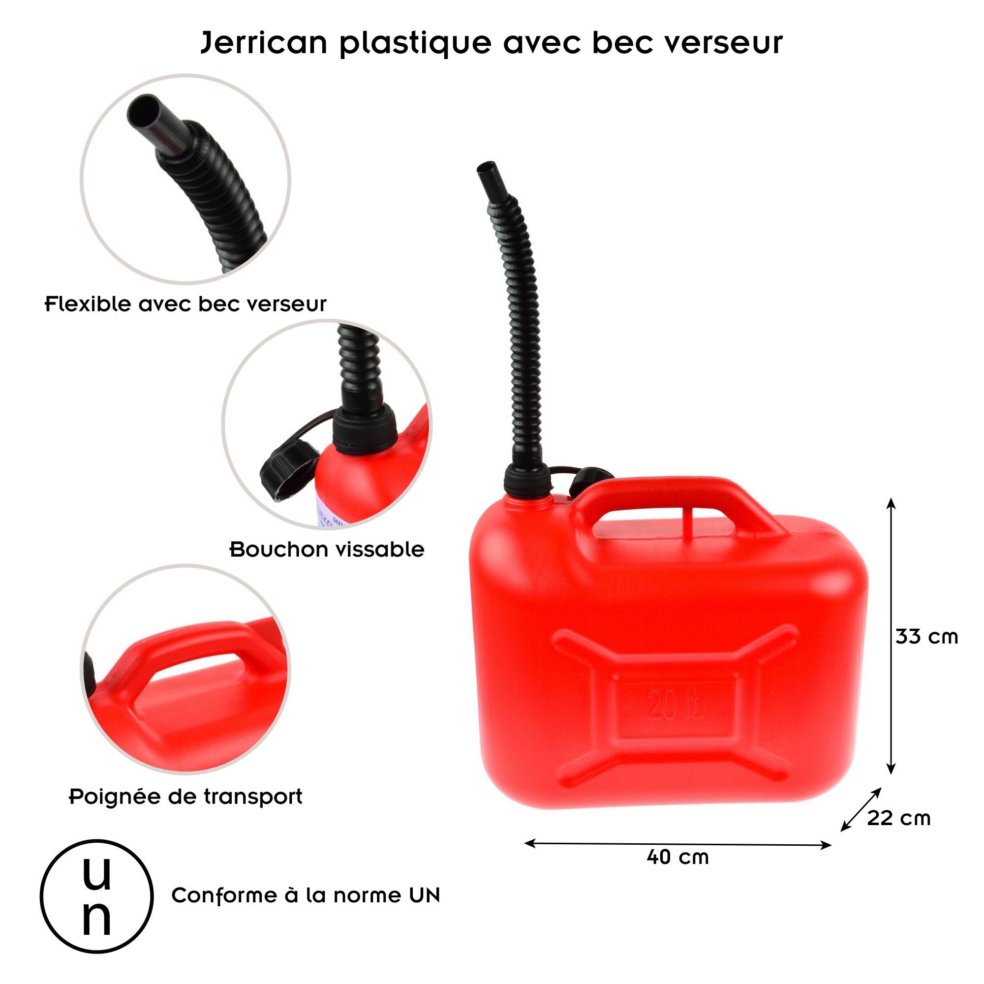 Jerrican essence en plastique avec bec verseur Rouge 20 L