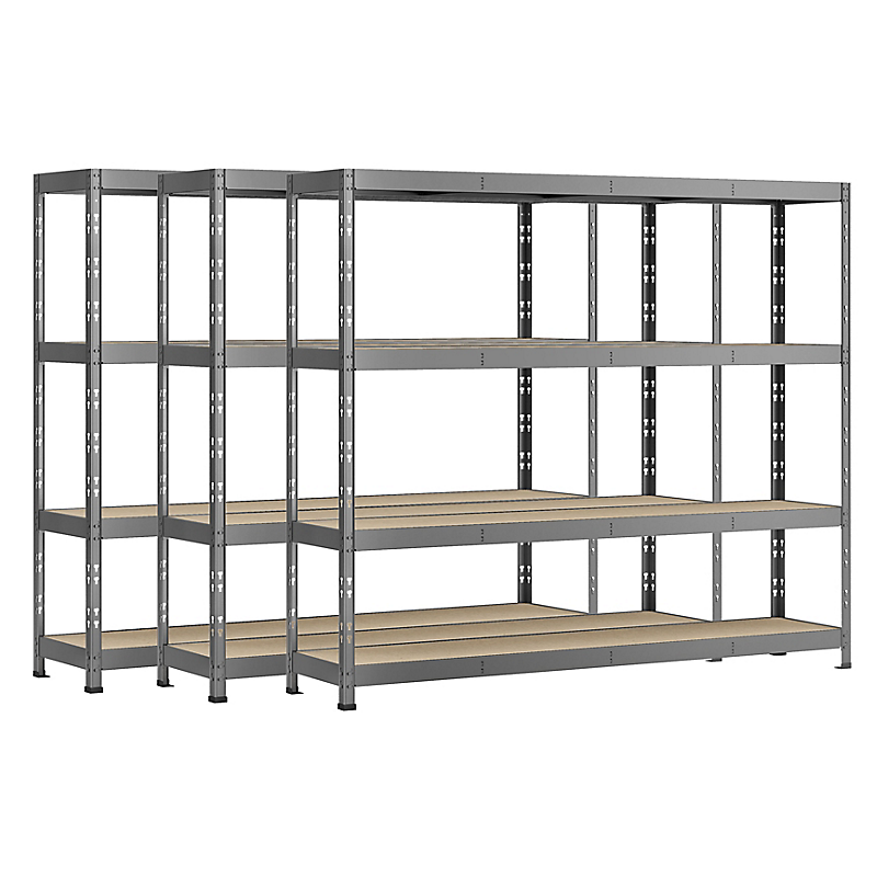 Jeu 3 étagères charge lourde 4 plateaux aggloméré 8 mm dimensions 50x220x185 cm 300 kg/plateau peinture époxy