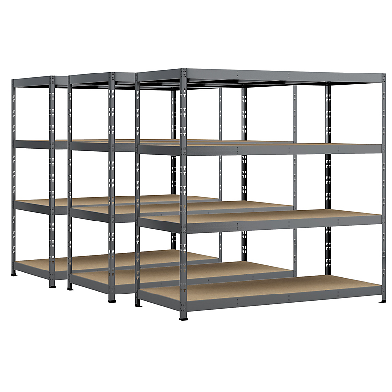 Jeu 3 étagères métallique charge lourde 600 kg/tablette 4 plateaux aggloméré 8 mm très grandes dimensions : très grande profondeur 80 cm très grande largeur 200 cm très grande hauteur 200 cm plateau bois aggloméré fsc 80x200 cm peinture époxy