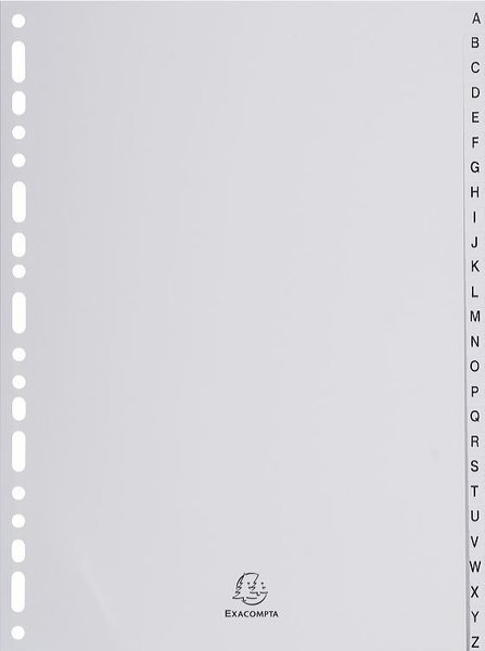EXACOMPTA - Jeu de 26 Intercalaires Alphabétiques Intercalaires imprimés Polypropylène gris, souple et indéchirable. 26 positions de A à Z - A4.
